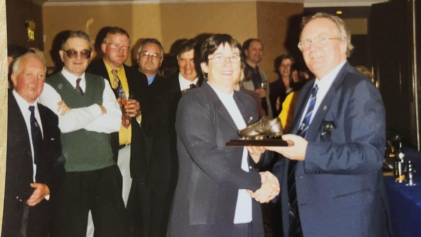 Eileen Hally receiving an award at the 25th anniversary celebrations.
