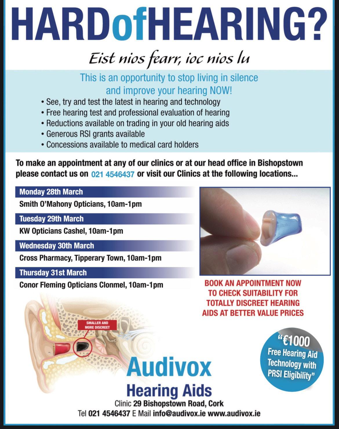 17-04-2024 Tipp Echo 3 BOB FITZGERALD HARDWARE 42nd ANNUAL SALE NOW ON! • DeWalt 18v 9 AH Battery • B & D Workmates • Selection Mis-Sheen Crown Paint • DeWalt DCR001 Bluetooth Radio • Milwaukee, DeWalt & Makita Power Tools • All Workwear • Base Boots • Snickers Workwear • 5 ltr Roundup • 3cwt Coal Bunkers • All Household • Iron Mongery • Sandtex Paint • Crown Paint • 18ltr Knapsack Sprayers • All Gardening Tools • Compost 3 for €19.00 Crown Paint Expert in Store All Day Friday 19th April! 18V Dewalt Drill with Battery: €215 Cuprinol Ducksback 5L: €15.95 Actiwash 5L €29.95 Crown 10L: €32.95 Sandtex 10L: €39.95 Snickers 6341: €95.00 €175 ½ Price ½ Price €135 Less 15% Less 20% ½ Price Less 20% €75 €110 Less 20% Less 20% Less 20% Less 20% €36.95 Less 20% Multipurpose Compost with Added John Innes 3 for €19.00! Tuesday 23rd April Wednesday 24th April Wednesday 24th April Wednesday 24th April Thursday 25th April Thursday 25th April Thursday 25th April Thursday 25th April Sheppard’s Opticians Thurles, 10am-3pm Conor Fleming Optician Clonmel, 10am-1pm Cross Pharmacy Tipp Town, 10am-1pm KW Opticians Cashel, 2pm-4pm Monday 14th May Thursday 25th April Wednesday 24th April Tuesday 23rd April