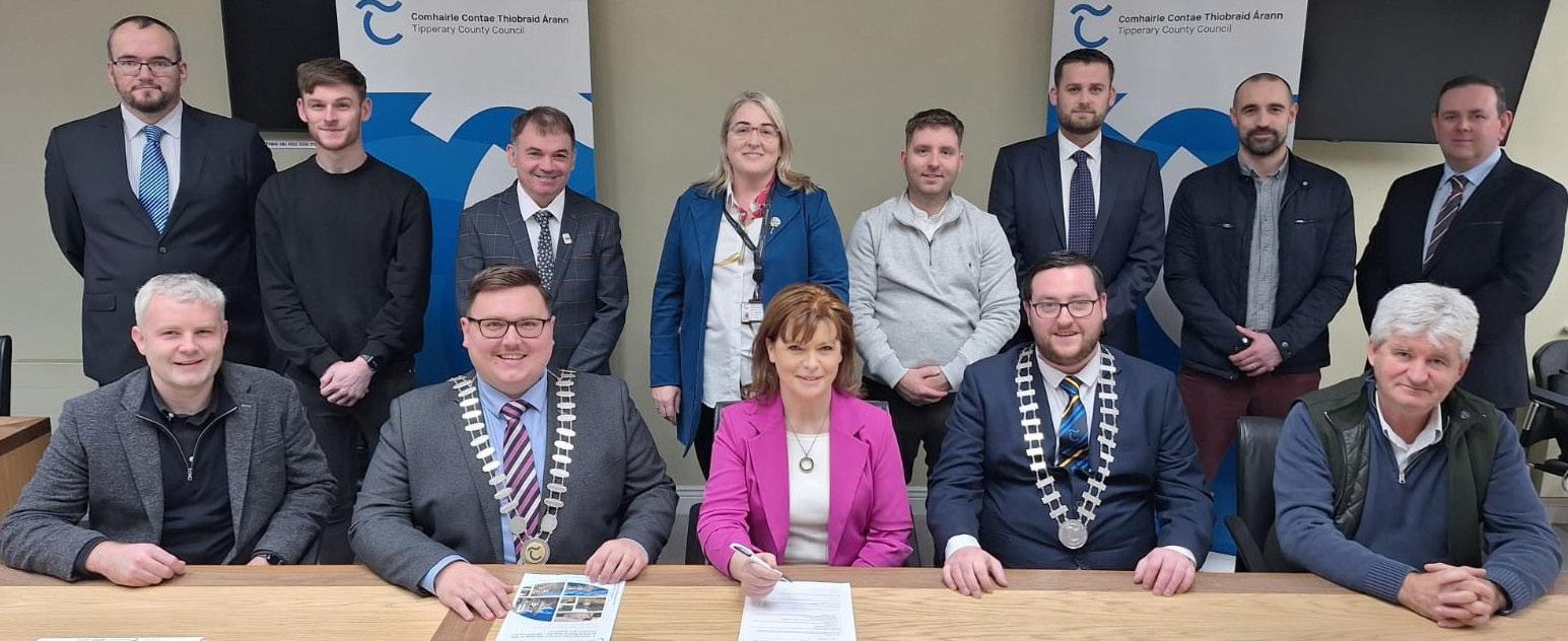 The contract, valued at €1,054,350.00, is being financed through the Rural Regeneration Development Fund, with additional support from Tipperary County Council. The formal contract signing took place on November 18. This initiative marks a significant step forward in enhancing the local community and boosting economic activity in the area. More on page 22