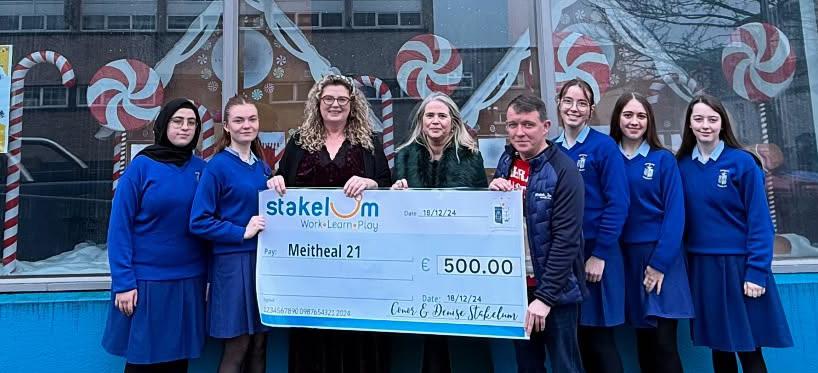 Scoil Mhuire, Greenhill. December 2024. Michael Lonergan (Society of St Vincent de Paul); Ms. O’Connell (Teacher); John Connolly (Society of St Vincent de Paul) along with some students.
