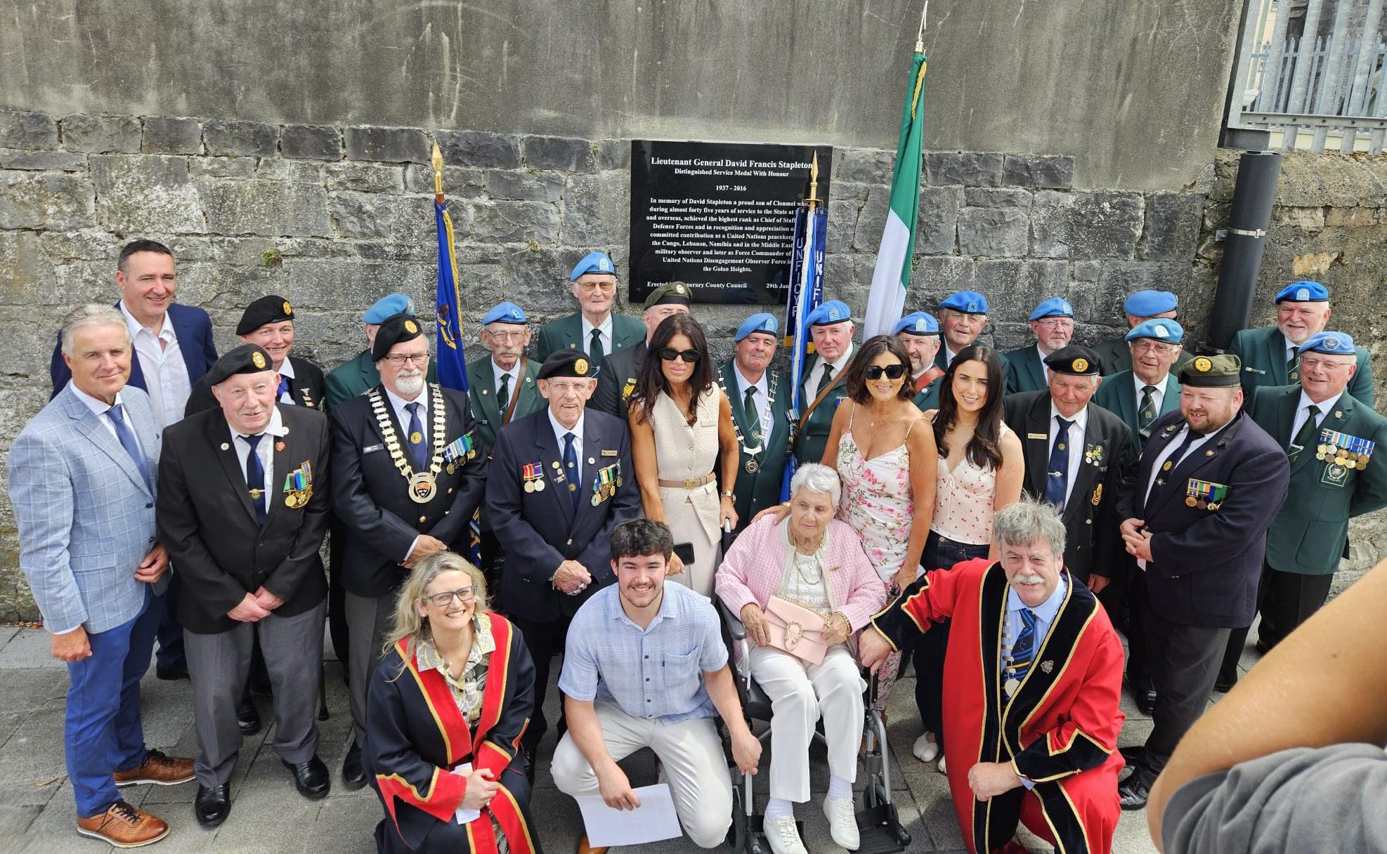 Images from the launch of the Memorial Plaque in Clonmel last week in honour of the late Clonmel born Lt Gen (Rtd) David Stapleton who died in 2016. David’s daughters, Barbara and Aimee, unveiled the plaque which was then blessed by the Bishop of Waterford and Lismore, Bishop Alphonsus Cullinan.