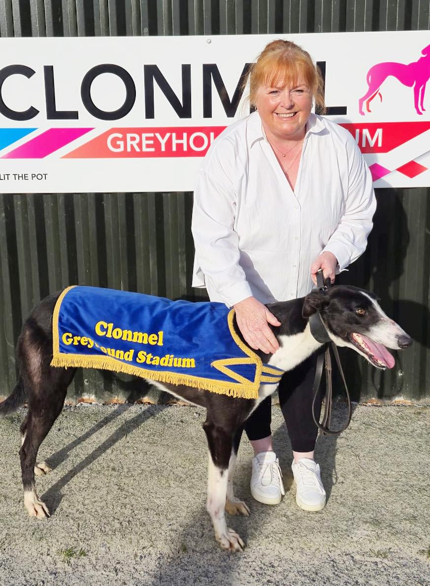 Rural Ana, by Pestana and Rural Aloha, on just her second start won the fifth race at Clonmel Greyhound Stadium on Friday night last with a trapto-line run in 28.84. She was competing with some very experienced runners, and this win was indeed a very promising performance from the youngster.