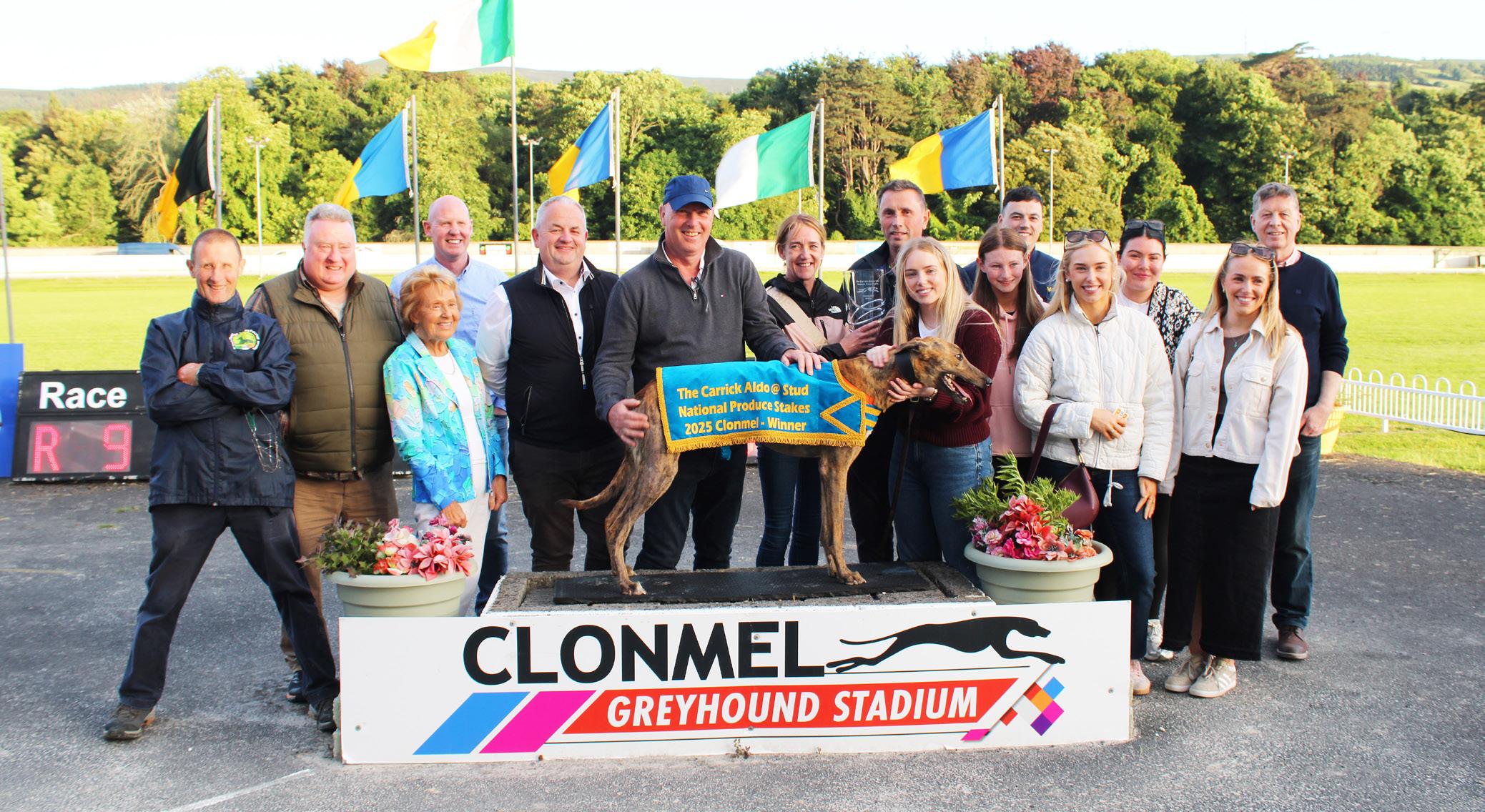 ONE OF Clonmel Greyhound Stadium’s biggest nights on their racing calendar is the final of the classic the National Produce Stake. This year’s the event, sponsored by Tom Glynn, was The Carrick Aldo @ Stud National Produce Stake carrying a winner’s prize of €20,000 and had a final lineup worthy of the event.