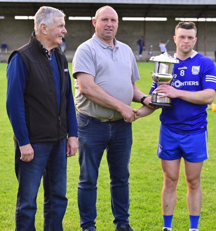 The Cahill Cup was presented to Sarsfields captain Stephen Cahill by Mid Tipperary GAA Board Chairman Martin Bourke, with Tom Cullen, representative of the sponsors also present.