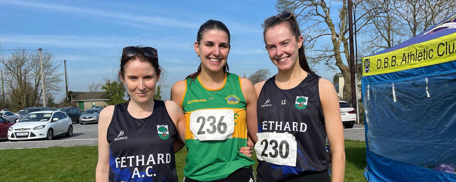 Fethard AC and Mary Keane of Dundrum AC. Orla made every stride on the return journey a winning one when coming home to a very convincing winner in 11 mins 2 secs. This was a brilliant performance by Orla who was 2nd in this event last year and no doubt she was very determined to go one better, which she did in style. Then we had Laura Earley also running very well and like Orla she improved on her bronze medal last year when winning the silver this year in 11 mins 32 secs. The tussle for the bronze medal was decided on the homeward trip with Edel Roche finishing 3rd in 11 mins 43 secs. For the record Mary Keane of Dundrum was 4th 11.50, Catherine Fogarty Dundrum AC was 5th 12.05 and Paula Hendriksen of Fethard AC 6th in 12.14. With three to count on the inter club front, Fethard were winners on eleven points with Laura Earley, Edel Roche and Paula Hendriksen. Dundrum won the silver medals with Mary Keane, Catherine Fogarty and Emily Leahy who was 7th 12.17. Moyne AC