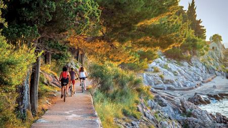 Alternativna ruta međunarodne biciklističke rute EuroVelo 8 prolazi duž cijelog otoka Korčule.