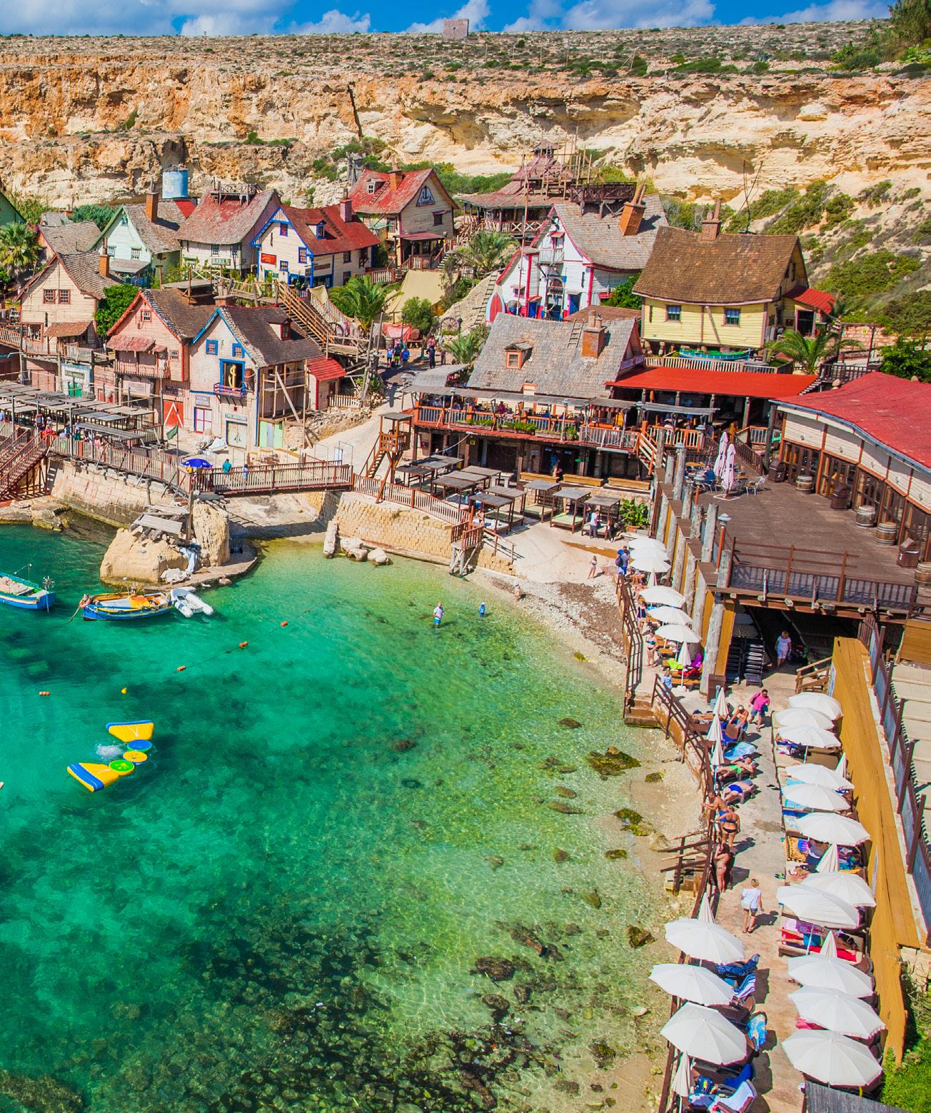 Možda kao dijete niste voljeli jesti špinat, ali ste zato obožavali gledati crtiće s Popajem, najvećim ljubiteljem špinata. O tom simpatičnom mornaru je 1980. snimljen i film za što je savršena kulisa bio predivan zaljev na sjeverozapadu Malte. Za potrebe snimanja filma tamo je, u svega sedam mjeseci, izgrađeno selo s 19 autentičnih kućica šarenih boja, za čiju je izgradnju drvo doneseno čak iz Nizozemske budući da na Malti nema šuma. Po završetku snimanja, filmaši su otišli iz sela ostavivši za sobom cijeli set, sa svim konstrukcijama. Kreativni mještani u tome su prepoznali turistički potencijal, selo dodatno uredili te ga pretvorili u zabavni park u koji danas hrle ljubitelji Popaja iz cijelog svijeta. Popeye Village ili Sweethaven Village danas je muzej na otvorenom i jedna od najvećih turističkih atrakcija Malte koja nudi zabavu svim generacijama posjetitelja. Kino projekcije, lutkarske predstave, vožnja brodom, pubovi i restorani... U Popajevom selu odličan provod je zajamčen.