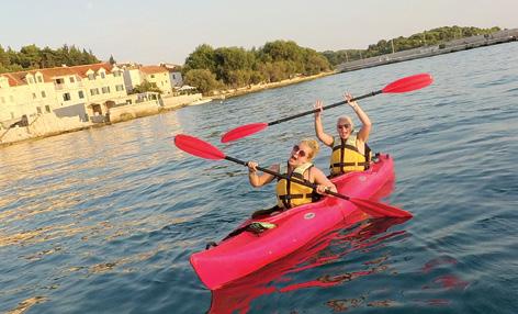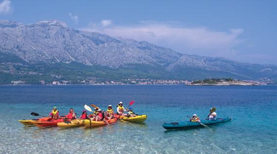 6 Kayaking; 7 Pješčana plaža Pržina u Lumbardi; 8 Vožnja kroz Smokvicu; 9 Biciklisti u Korčuli; 10 11 12 Vrhunska enogastronomija obilježje je otoka, a autohtone sorte bijelog grožđa, pošip i grk, rezultiraju izvrsnim vinima.
