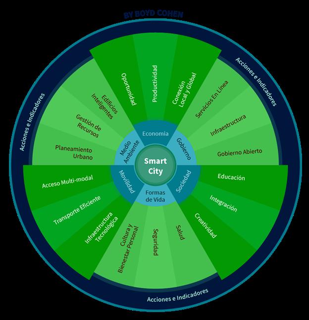 En tal virtud, en esta obra quienes integramos la comunidad jurídica del Doctorado Interinstitucional en Derecho de las Universidades Públicas de la Región Centro Occidente de la ANUIES, estudiosos del derecho por influencia del desarrollo, la tecnología y la innovación, generamos un protocolo de investigación con el objetivo de identificar y analizar el funcionamiento del marco legal existente, así como el papel del gobierno, los agentes involucrados como el sector social y privado, así como demás actores que promueven la implementación de la innovación tecnológica a partir de los componentes clave que hacen que una ciudad sea inteligente, basados en la “Smart Cities Wheel” o “Rueda de Ciudades Inteligentes” creada por Boyd Cohen, quien después de realizar una exhaustiva investigación sobre métricas de ciudades inteligentes en todo el mundo, la desarrolló y publicó.