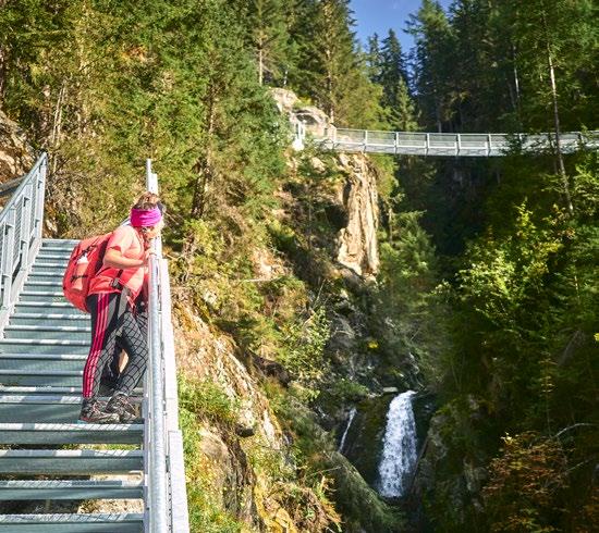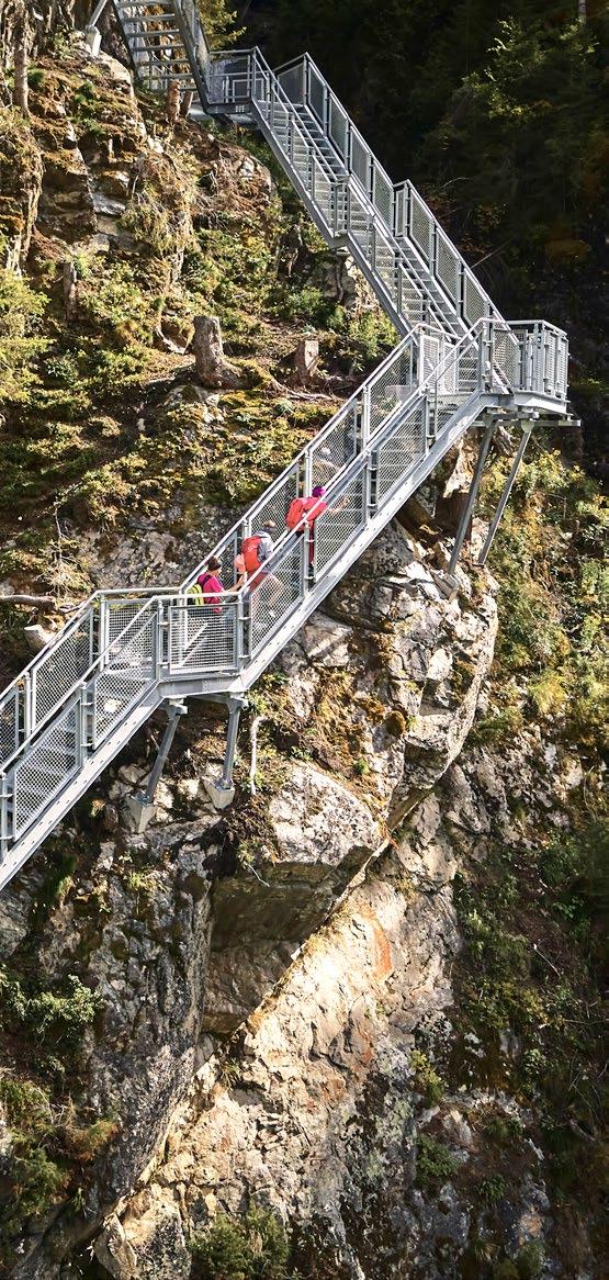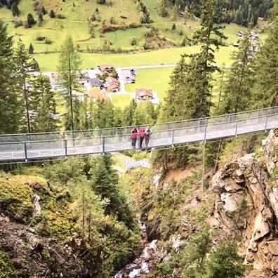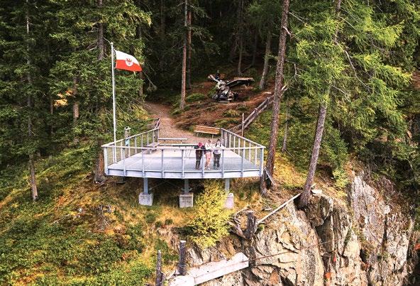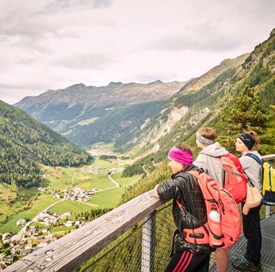 Here one is surrounded by a kingdom of three thousand metre peaks, wild and silent nature, culture and magical places. One such place is the Adlerblick (eagle’s view), a viewing platform built on an over 100metre-high rock face above Feichten.