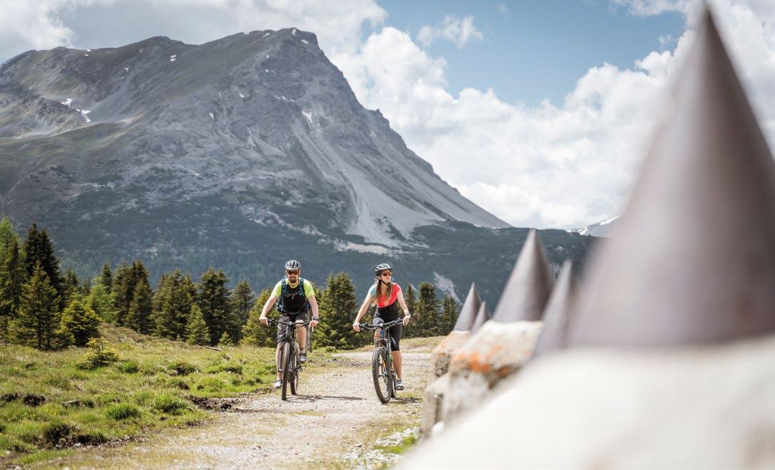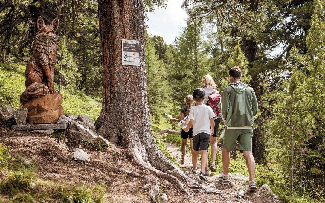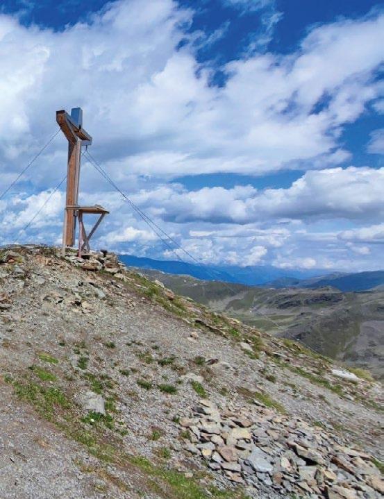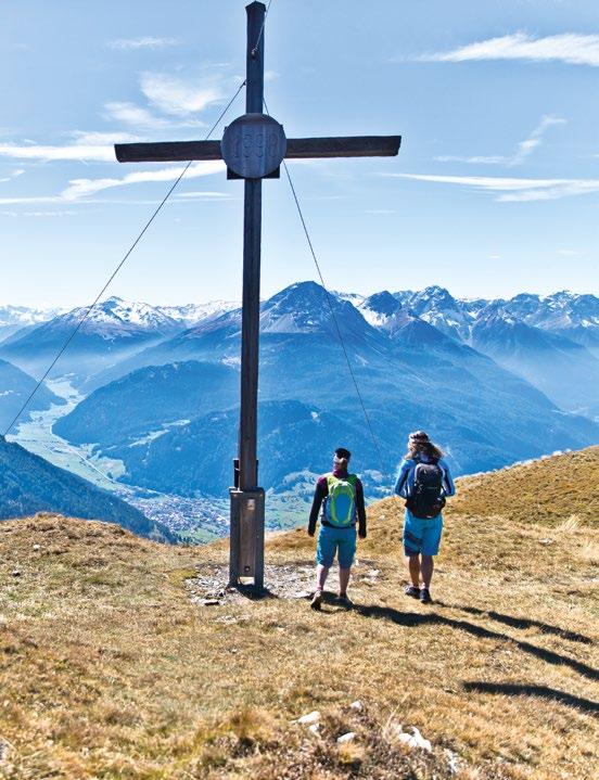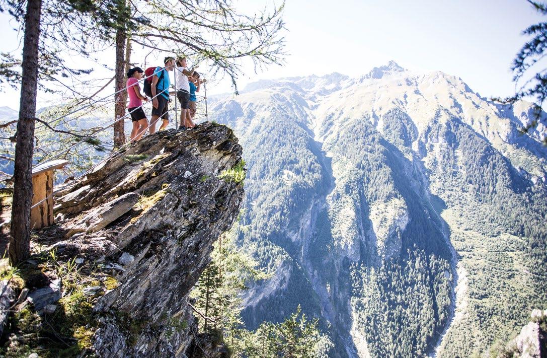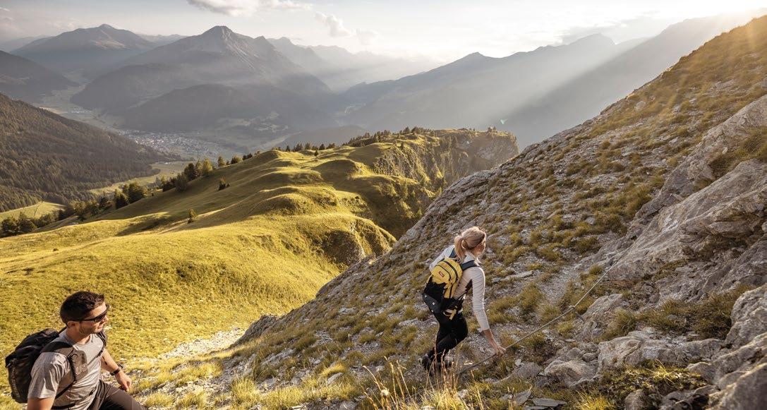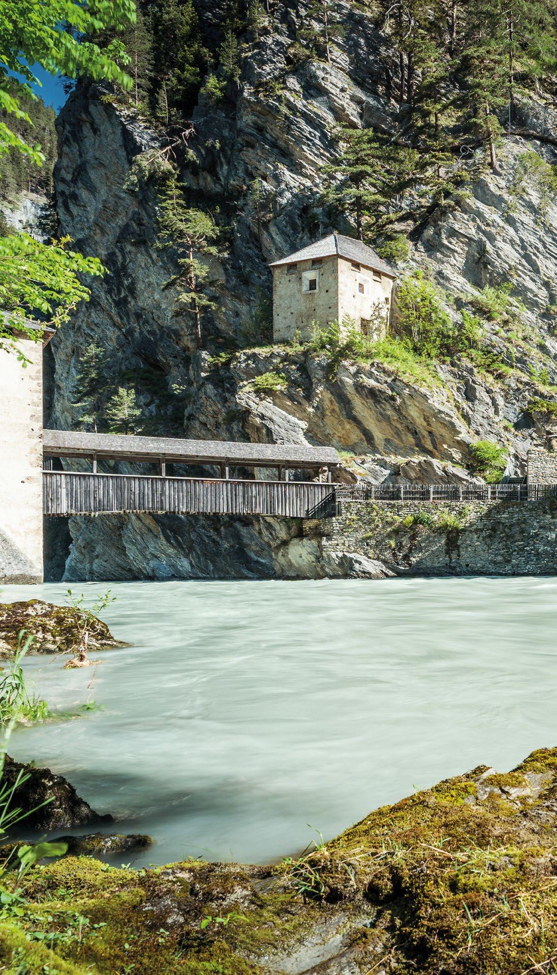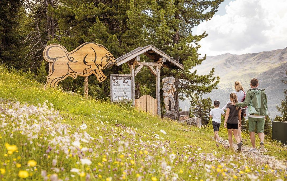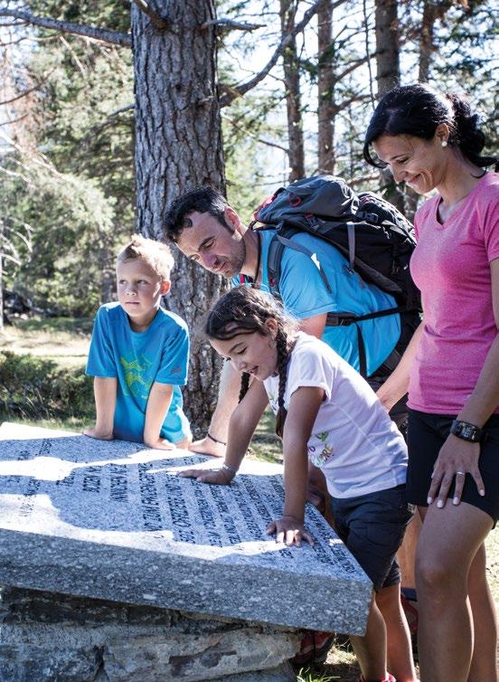 Verfallene Stellungen und begehbare Felskaver- nen hoch über Nauders sind stille Zeitzeugen der Geschehnisse im Ersten Weltkrieg, der vor gut 100 Jahren zu Ende gegangen ist. Die Kaiserschützen des Landes waren damals zur Grenzverteidigung eingesetzt und sind namensgebend für den heutigen Themenweg. Erbaut zum Schutz vonTirol alsTeil der österreichisch-ungarischen Monarchie, wurden einst Lauf- und Schützengräben eingerichtet, Wald zur freien Sicht gerodet, Drahtverhaue aufgestellt und Kavernen (begehbare Hohlräume) als Soldaten- Unterkünfte tief in den Fels geschlagen.