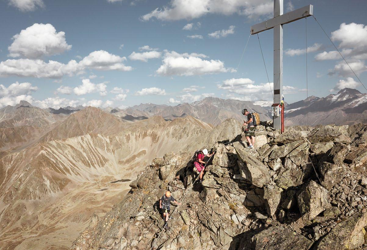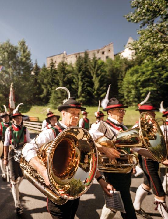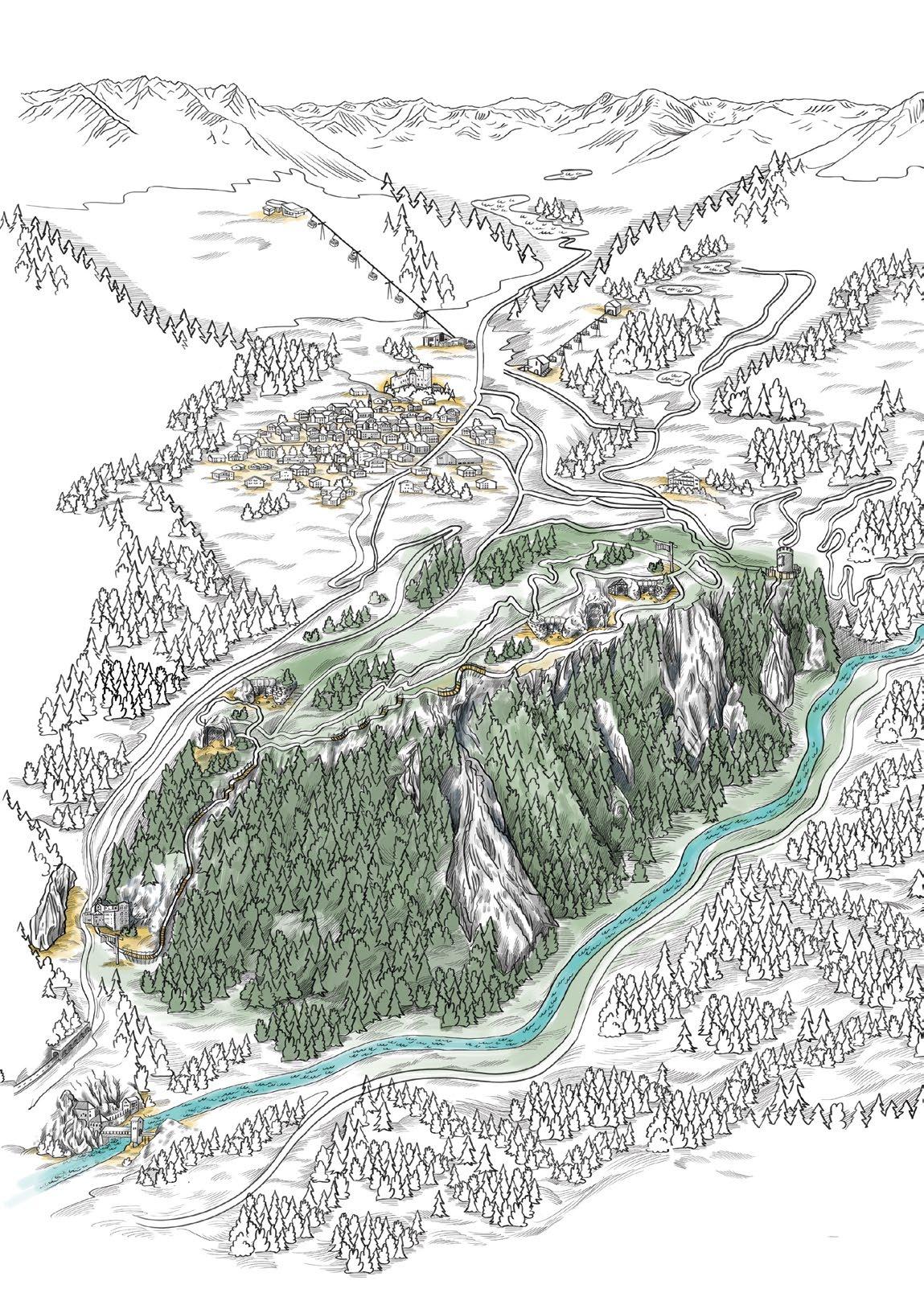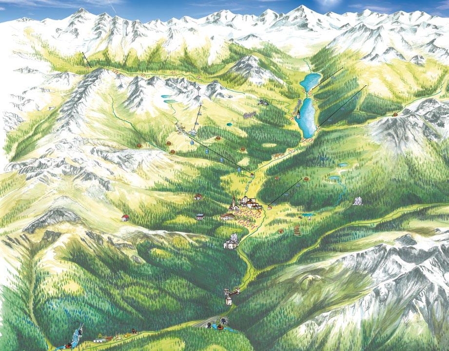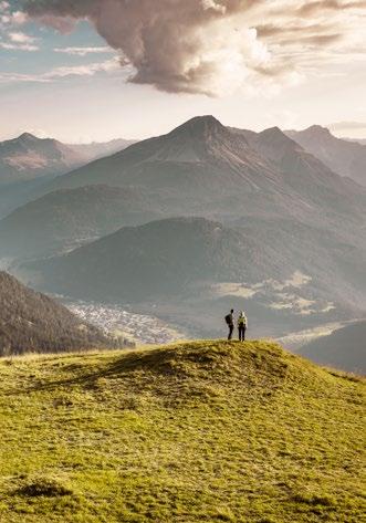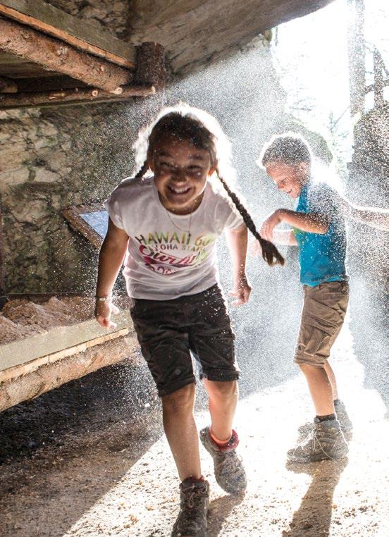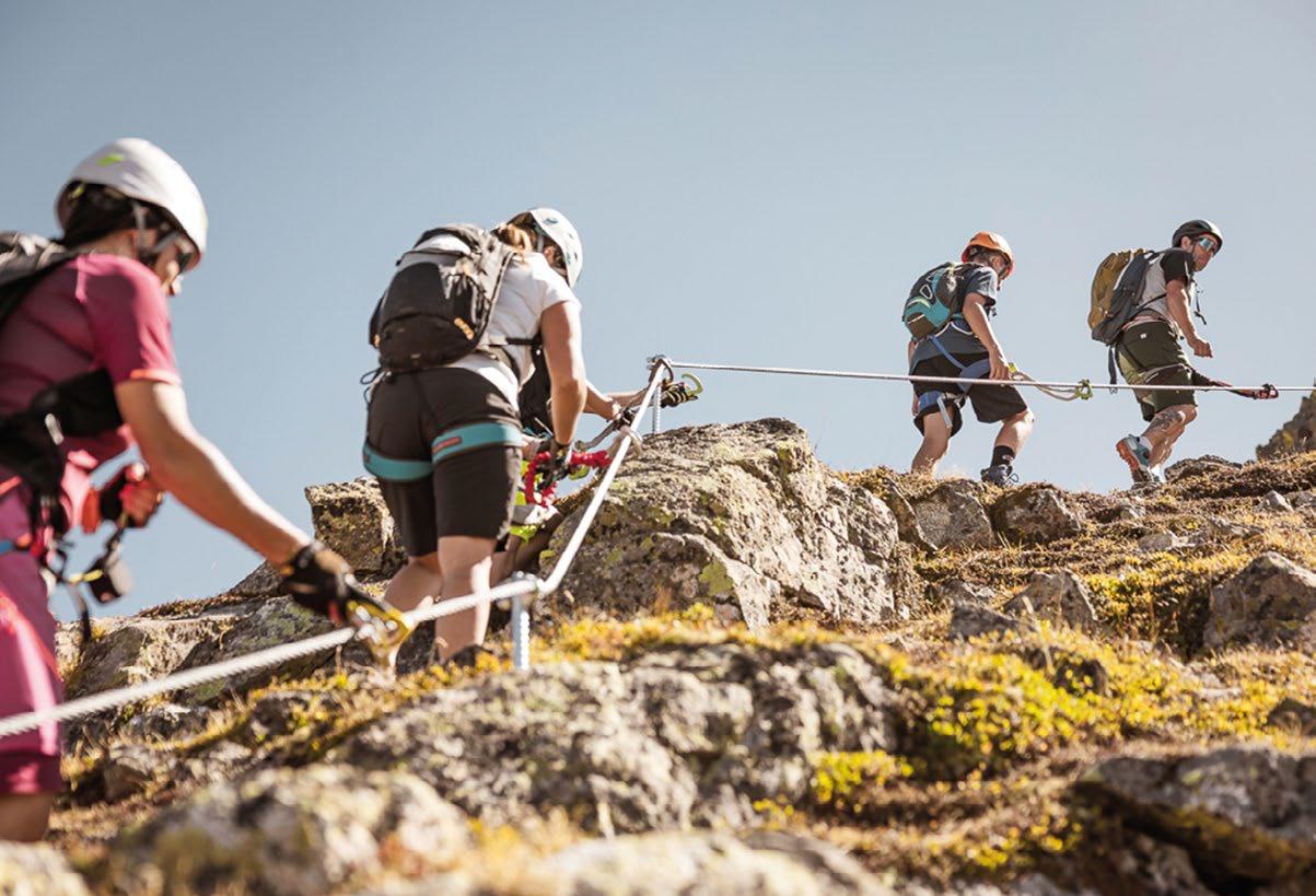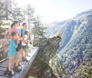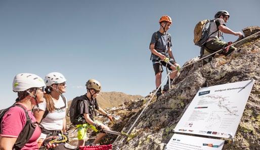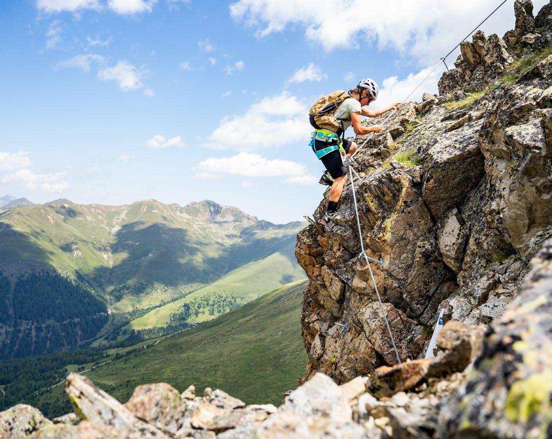 Verfallene Stellungen und begehbare Felskaver- nen hoch über Nauders sind stille Zeitzeugen der Geschehnisse im Ersten Weltkrieg, der vor gut 100 Jahren zu Ende gegangen ist. Die Kaiserschützen des Landes waren damals zur Grenzverteidigung eingesetzt und sind namensgebend für den heutigen Themenweg. Erbaut zum Schutz vonTirol alsTeil der österreichisch-ungarischen Monarchie, wurden einst Lauf- und Schützengräben eingerichtet, Wald zur freien Sicht gerodet, Drahtverhaue aufgestellt und Kavernen (begehbare Hohlräume) als Soldaten- Unterkünfte tief in den Fels geschlagen.