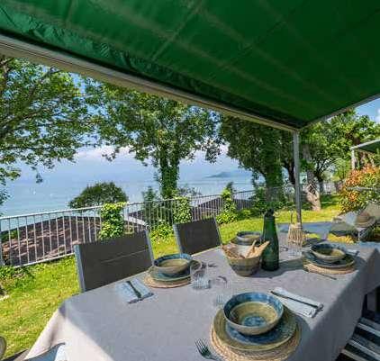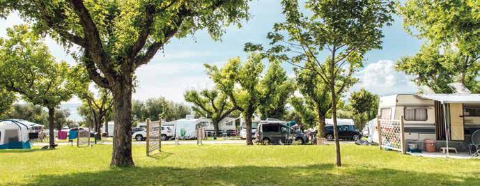 – Lago: piazzole al lago da nr. 1–24 e 35–47, corrente 10 A, acqua e scarico acque, 100 m2, Wi-Fi.