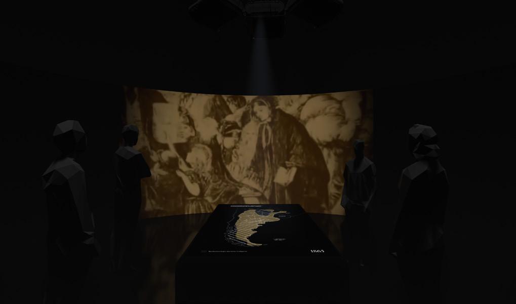 Una sala audiovisual que explora la historia de Argentina a través de sus poblaciones, su historia territorial y su diversidad lingüística. Mediante un mapping que sigue la forma de Argentina, se observa cómo los movimientos migratorios y las poblaciones nativas a lo largo del tiempo han dado forma a la identidad del país. Una proyección 360° que combina videos, datos y material de archivo para ofrecer una comprensión profunda de nuestra historia.