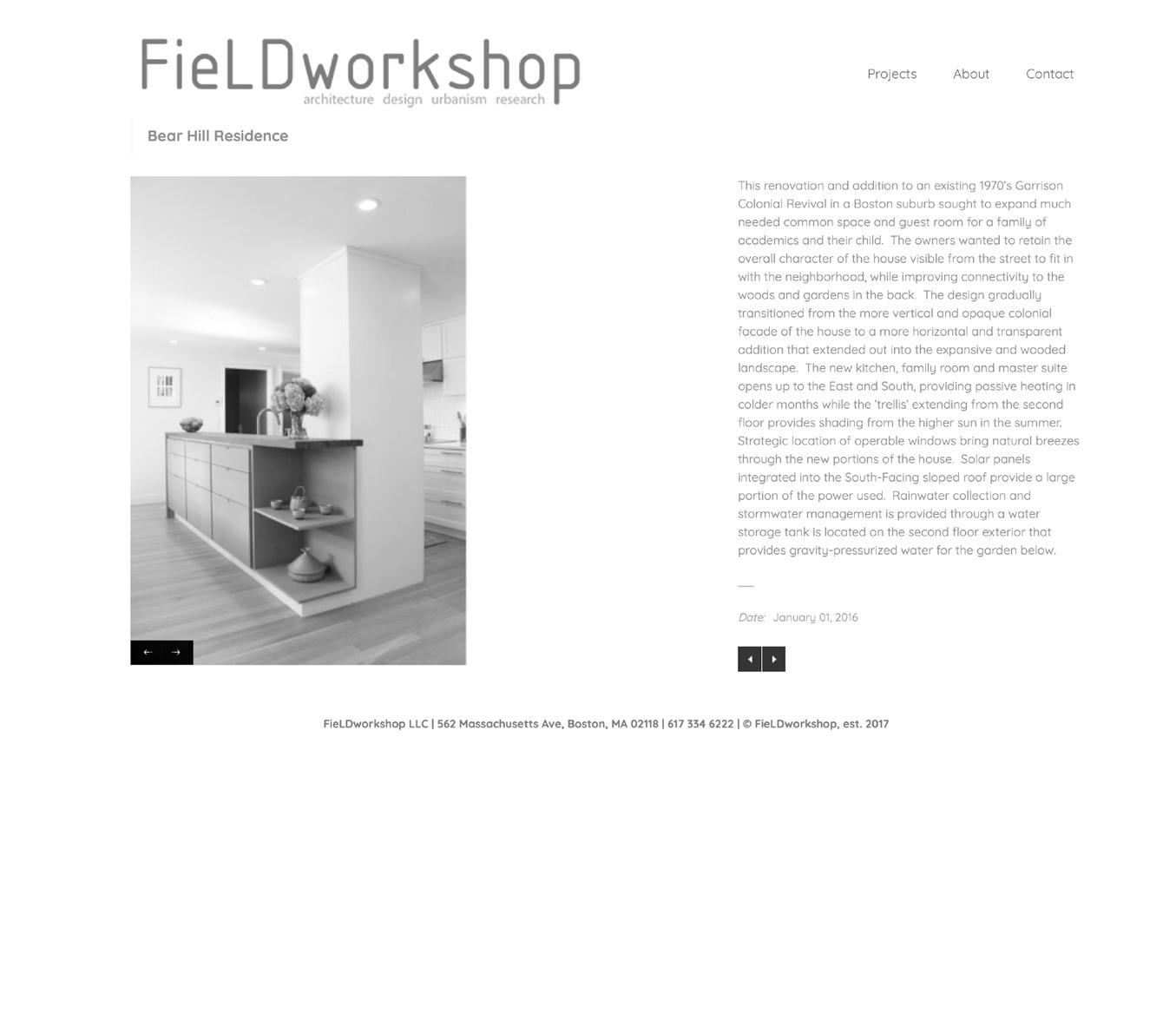 During my co-op at FieLDworkshop, I created a new website to better showcase the firm’s projects and specialties. The existing website was slow to load, had a confusing user interface and needed layout improvements. Without any prior web design experience, I learned how to use industry-leading web design software and worked closely with the firm principals to identify needed features and match their desired aesthetic. The new website includes a reworked home page, project pages, filtering, news and integrated animations. Perhaps the largest improvement is a content management system - a database that allows page content to change dynamically, significantly streamlining future maintenance.