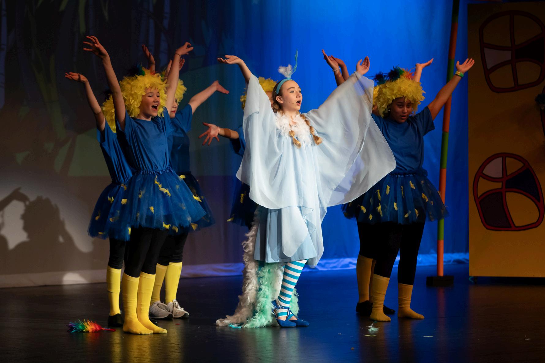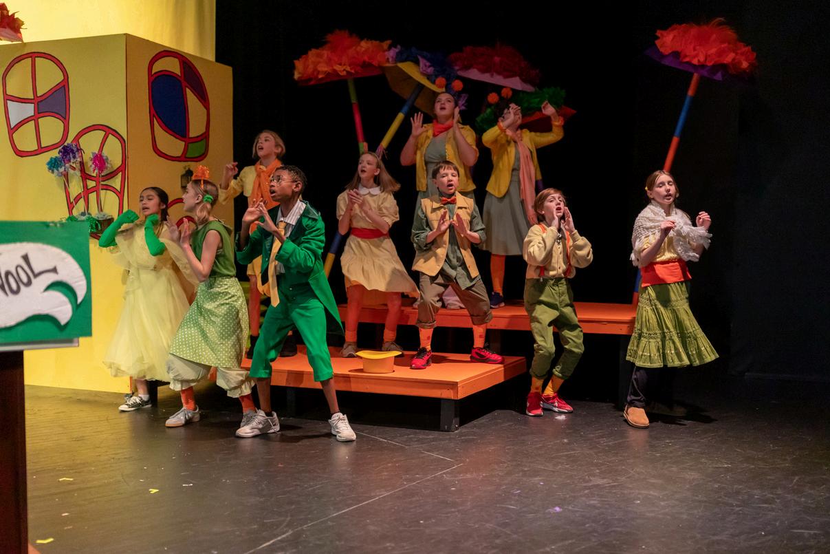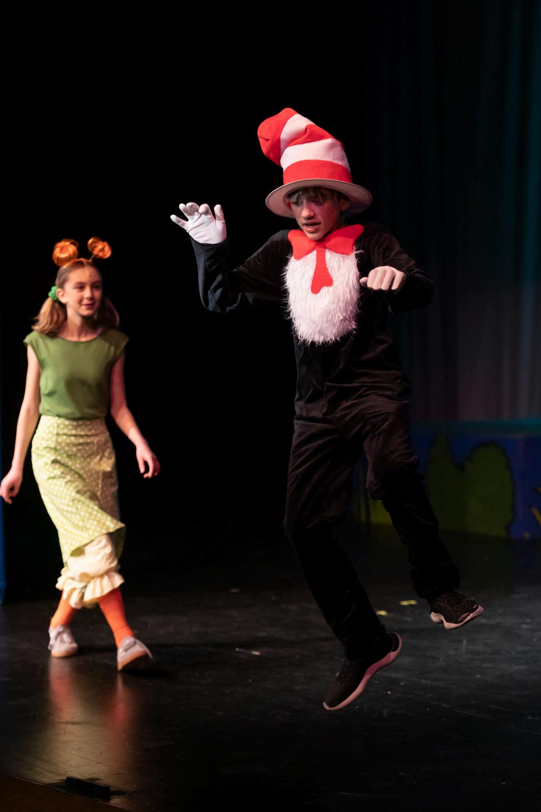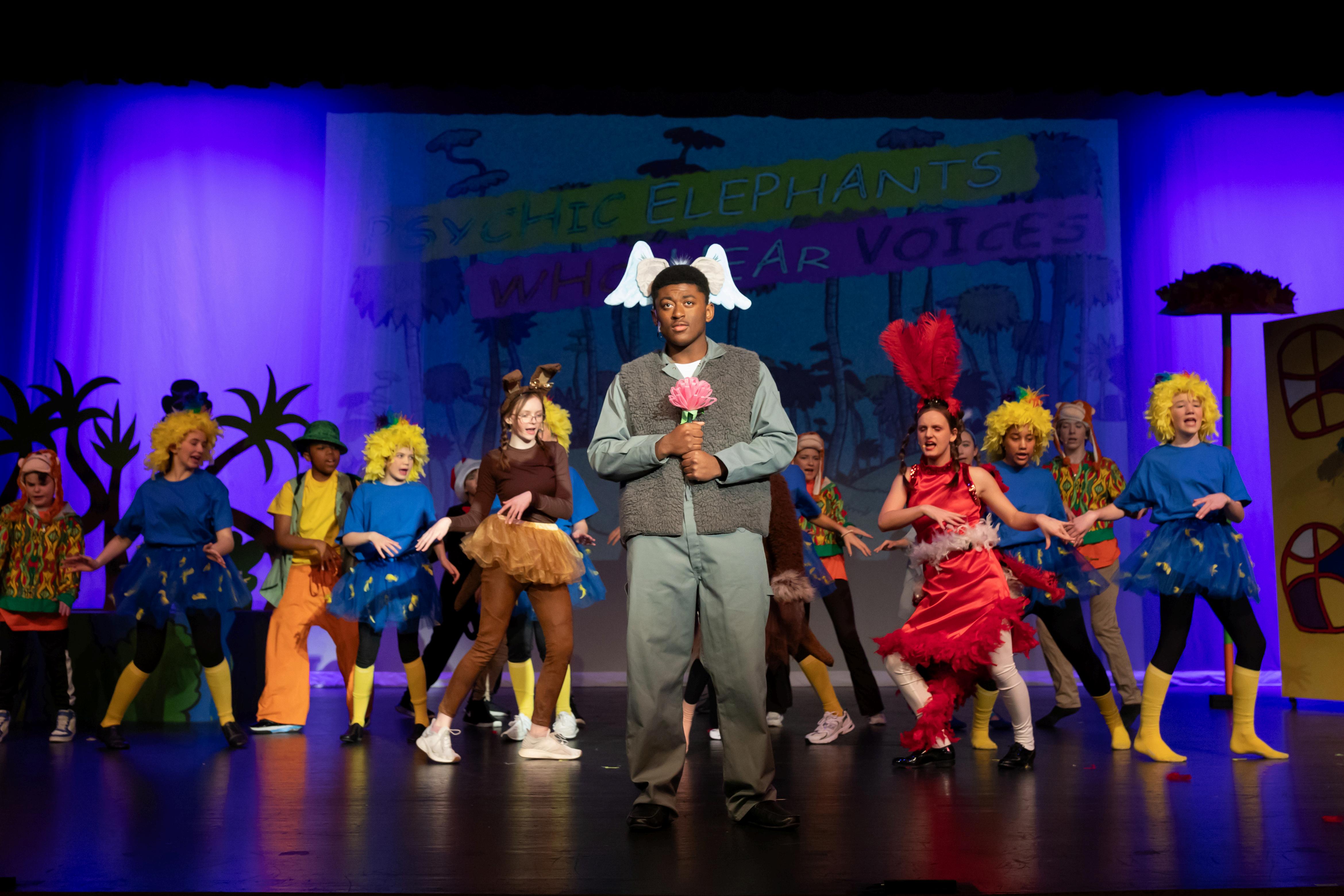 Indian Creek Middle School illustrated the incredible power of friendship, loyalty, family and community through their winter musical, Seussical! Transporting audiences from the Jungle of Nool to the Circus McGurkus, Creek sixth through eighth graders shared an unforgettable and highly entertaining story As the Cat in the Hat (Cooper Geismar ’30) narrated the story of Horton the Elephant (Eyan White ’29), who discovers a speck of dust containing tiny people called the Whos Horton determined to protect the Whos from a world of naysayers and dangers, while guarding an abandoned egg left in his care by the irresponsible Mayzie La Bird (Elle Crowder ’29) Although Horton faced ridicule, danger and a trial, the intrepid Gertrude McFuzz (Rooney McCormick ’29) never lost faith in him This show emphasized the important of authenticity, connection, and curiosity for audiences of all ages Bravo, Middle School!