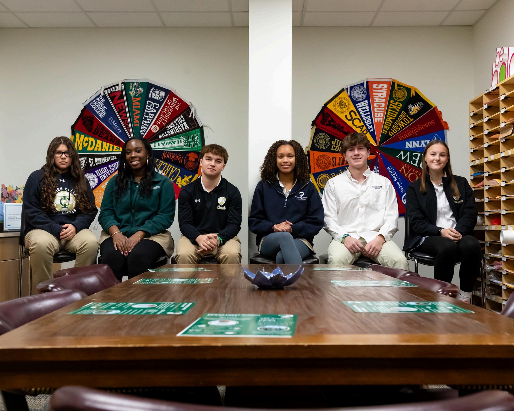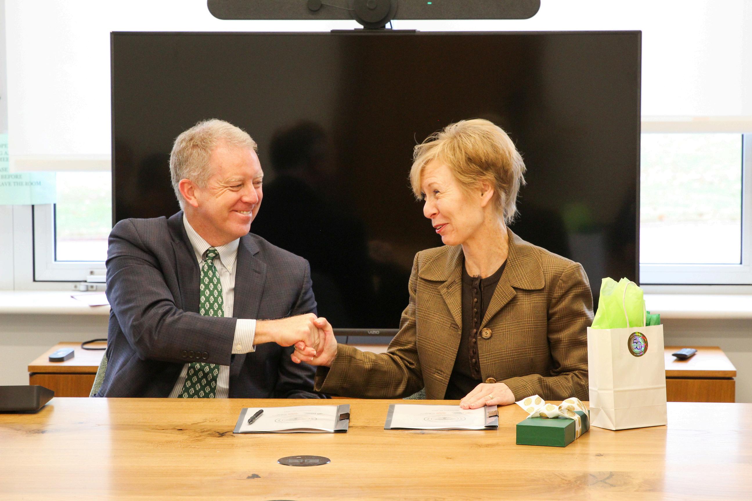 Above:ICSHeadofSchoolBoothKyleandSt.Johns CollegePresidentNoraDemleitnerofficiallyconfirm theFellowshippartnership.Right:Facultyandstaff fromSt.John'sandIndianCreekattendanMOU signingceremony(LefttoRight:JuliusSmith,Kaycie Bowen,BenBaum,BrendanBoyle,NoraDemleitner, BoothKyle,SarahAllen,TylerLarkin,Tiffany McCormick,JennyKeuleman,StuartWilliams)