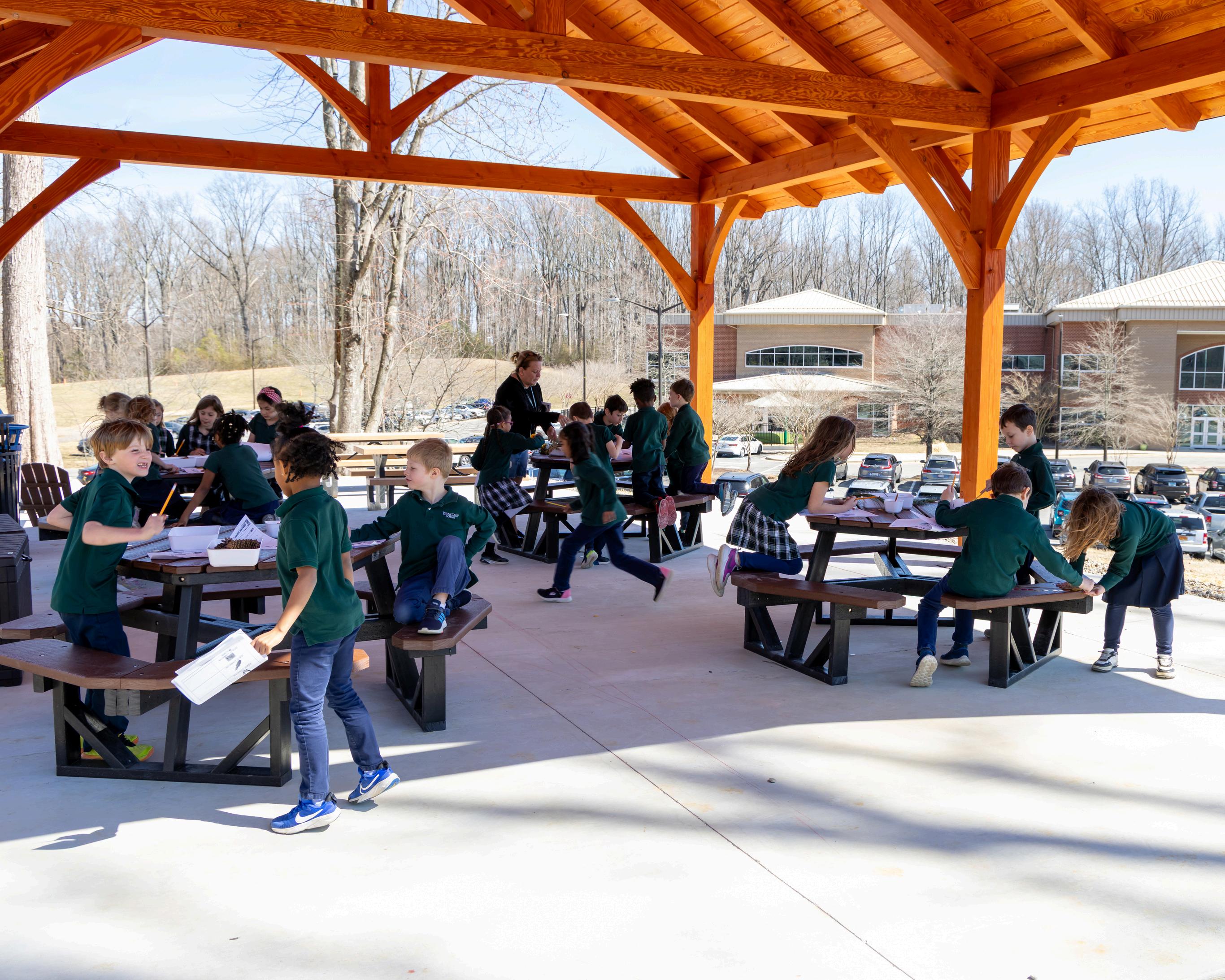 Indian Creek School is committed to developing robust outdoor and environmental education programs for all students The opening of a new 1,440 square-foot outdoor learning pavilion in early 2025 was a major step in reaching this goal The Pavilion serves as a hub for outdoor learning, allowing students to escape the traditional classroom setting and draw inspiration from the natural environment