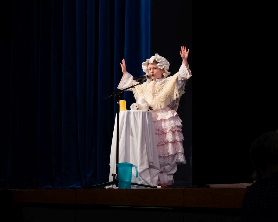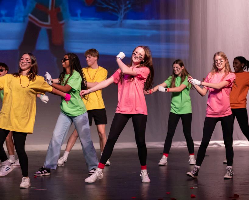 Clockwisefromtop:JoJo(SageKirby ’31)andtheCatintheHat(Cooper Geismar’30)introducetheshow.Ellie Singleton’31andLCGavelnek’30hit thehighnotesastheSourandYoung Kangaroos.TheWhos(CarolynPena Arriaga’31,SageKirby’31,Sophie Lloyd’31,JoshWashington’31,Katie Richardson’31,PearlAlexander’30, JohnBecker’31,SullyHamill-King’30, LukeWatts’31,andIzzyHolden’29) danceinWhovilleastheydemandto beheard.Gertrude(Rooney McCormick’29)andtheBirdGirls (EllieMcEwen’30andMaliaTetteh ’30celebrateamany-featheredtail.
