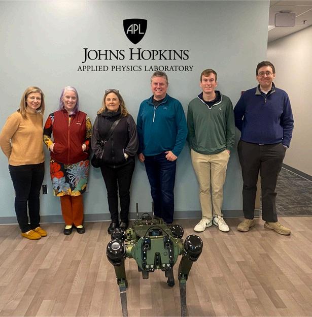 A group of Indian Creek faculty, parents, and alumni recently came together for a tour of the Johns Hopkins University Applied Physics Lab (APL) APL Deputy Mission Area Executive for Cyber Operations (and ICS parent) Angela DeLuca Thompson arranged the visit The group also included ICS Director of Educational Technology Sara White, STEM Program Coordinator Doug McNally, ICS parents Lee and Kristi Machemer, and alumnus and APL Cyber Engineering Associate Michael Mercer ’20