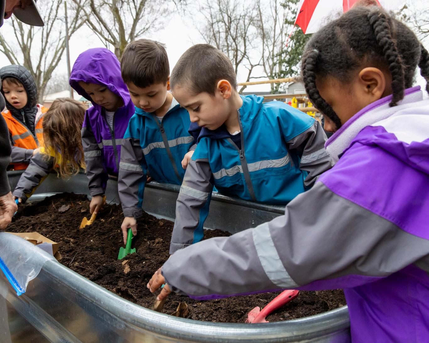 In addition, the pavilion provides a dedicated location to connect learning with Creek’s community garden. Spanning over 2,500 square feet, and created in partnership with FarmUnity, the garden provides hands-on experiences for students in sustainable agriculture and environmental stewardship. The garden has become a fantastic resource for learning, play, and outdoor engagement From Pre-K students planting spring crops, to fifth graders using the garden for a STEM project to create benches, to an Upper School ceramics and sculpture class using items from the garden to design woks inspired by Andy Goldsworthy, the garden fosters organic learning experiences