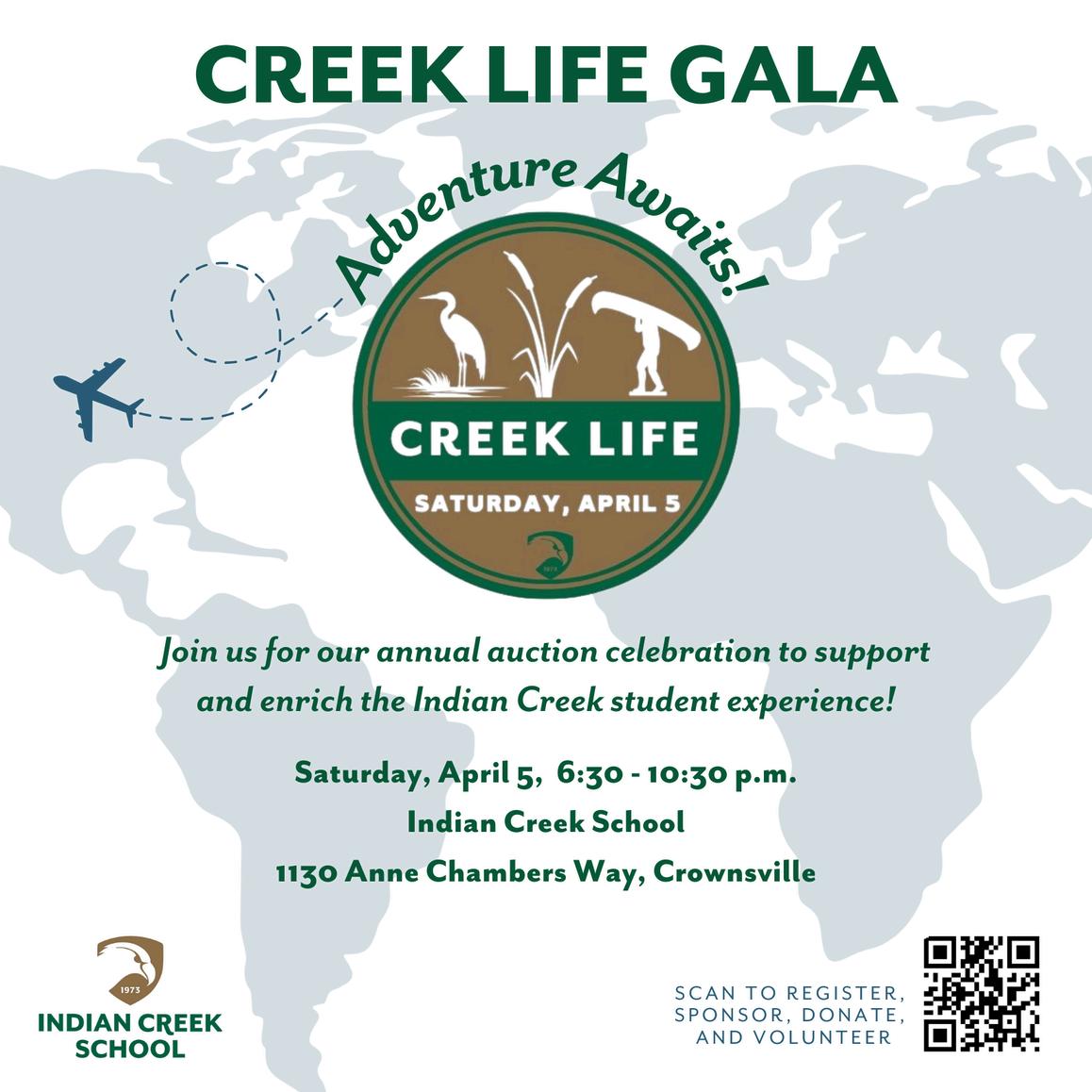 At Indian Creek School, we believe in providing an exceptional education that nurtures curiosity, fosters creativity, and builds character. Our mission is to create a transformative learning environmentwhere every student can thrive. Attending CreekLife on April 5 is just one ofthe manyways you can give back All proceeds from the live and silent auctions supportthe student experience Thankyou for being a vital part of our community and foryour unwavering support of our mission and vision. Together, we can make a lasting impact.