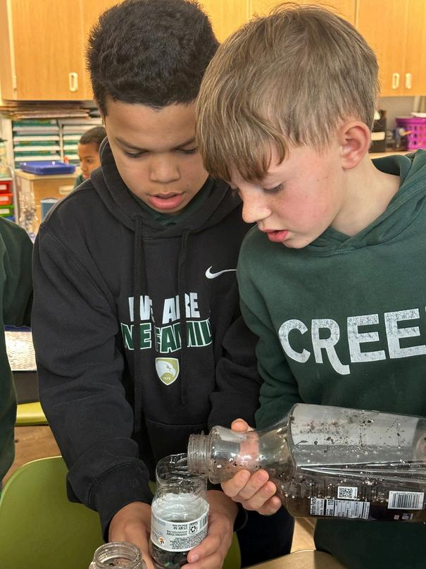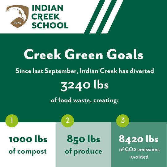 Creek’s commitment to outdoor education continues with the eighth grade Evergreen Sustainability Program This year, students are assessing the school’s environmental impact using a sustainability report card to evaluate areas such as food, water, student habits, and vegetation. They have also worked with guest speakers, including an educator from the Chesapeake Bay Foundation. Using their findings and experiences as inspiration, they will develop action plans for sustainability improvements at ICS, which they will have the opportunity to present at the MAEOE Youth Summit in May.