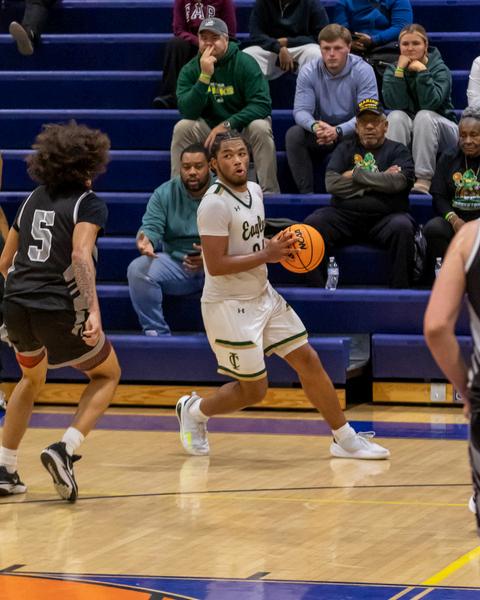The team challenged themselves with a schedule that pitted them against five A-Conference opponents The team had some amazing wins, highlighted by at thrilling three-point buzzer beater victory over Curley Kyle Harvin ’26 earned MIAA All-Conference honors.