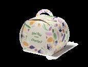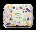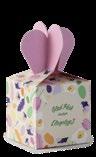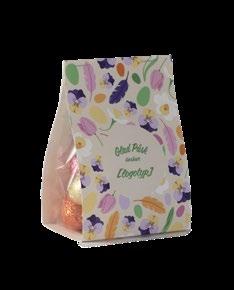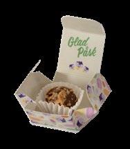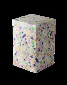 En av våra nyare förpackningar är hexagonen i stadig kartong. Vårt våriga mönster pryder runt hela asken och du kan välja till ett kort eller ett runt klistermärke som tydlig avsändare. Väljer du årets påskmotiv ingår tryck av din logotyp och hälsning.