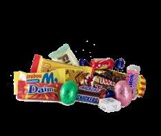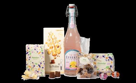 Alkoholfri bubblig lemonad 750 ml, La Pralines kakaopudrade tryfflar med smak av salt karamell 100 g, påskskum 100 g, kolamix i smakerna chokladmint, choklad och grädde 100 g, 12 st nougatfyllda chokladägg i klassisk äggkartong 130 g.