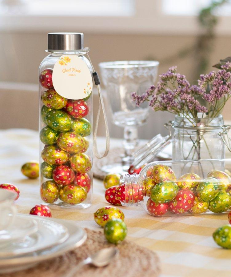 Krispiga mjölkchokladägg med härliga vårfriska färger.