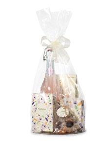Levereras vackert inslagen i cellofan med en matchande rosett
