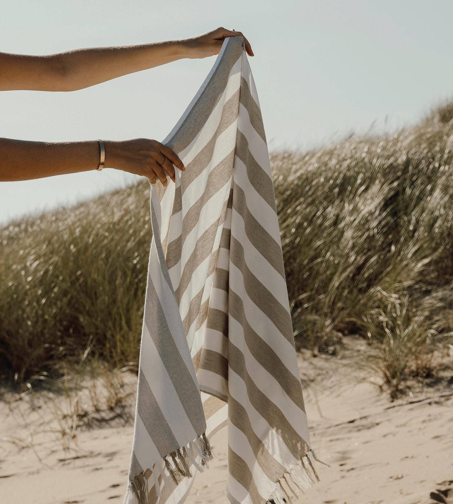 Introducing our Hamam range – where comfort and functionality go hand in hand. This collection includes a soft, striped bathrobe and bath towel, both made from recycled materials. Perfect for both the beach and home, the lightweight fabrics absorb moisture and dry quickly.