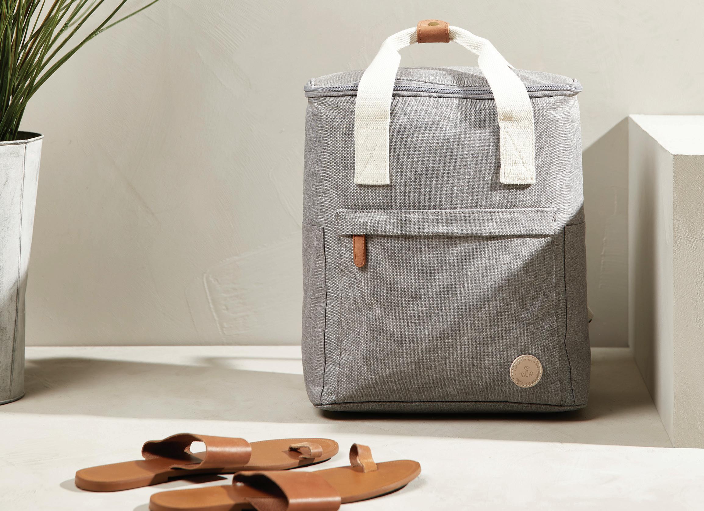 Sortino Trail cooler backpack + Omni Sip RCS certified re-steel lockable bottle 720ml + Twist RCS recycled plastic re-chargeable portable fan