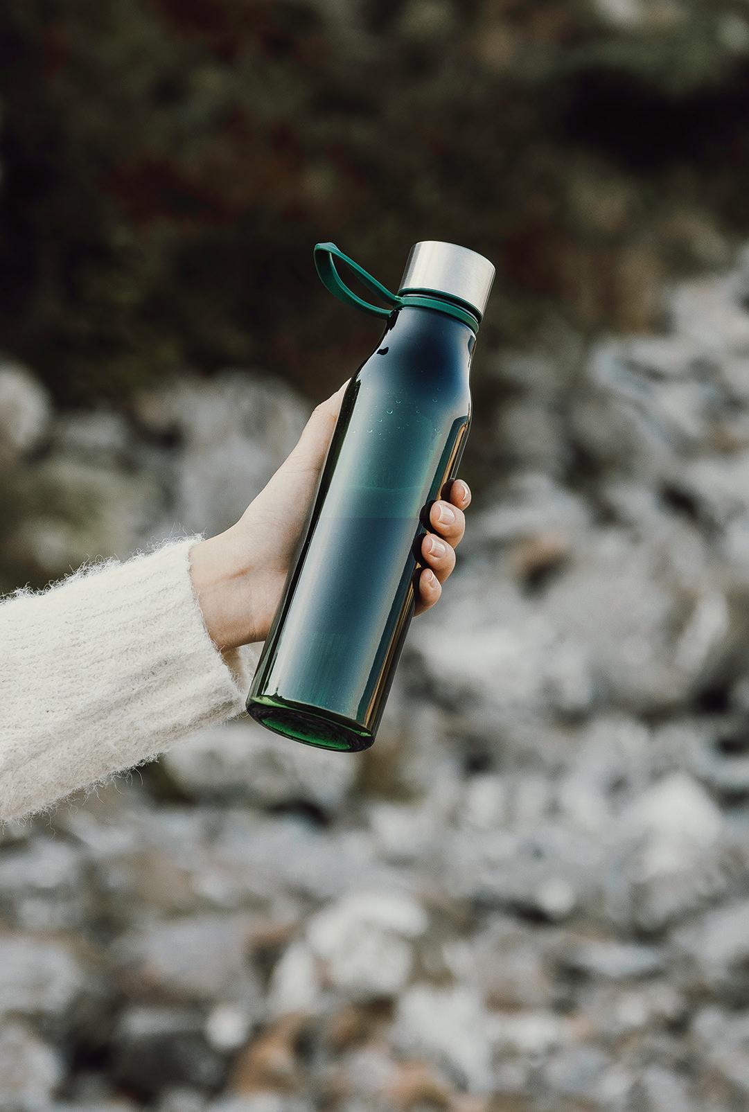 Crafted from BPA free RCS certified recycled PET, this water bottle is perfect for your daily hydration needs.