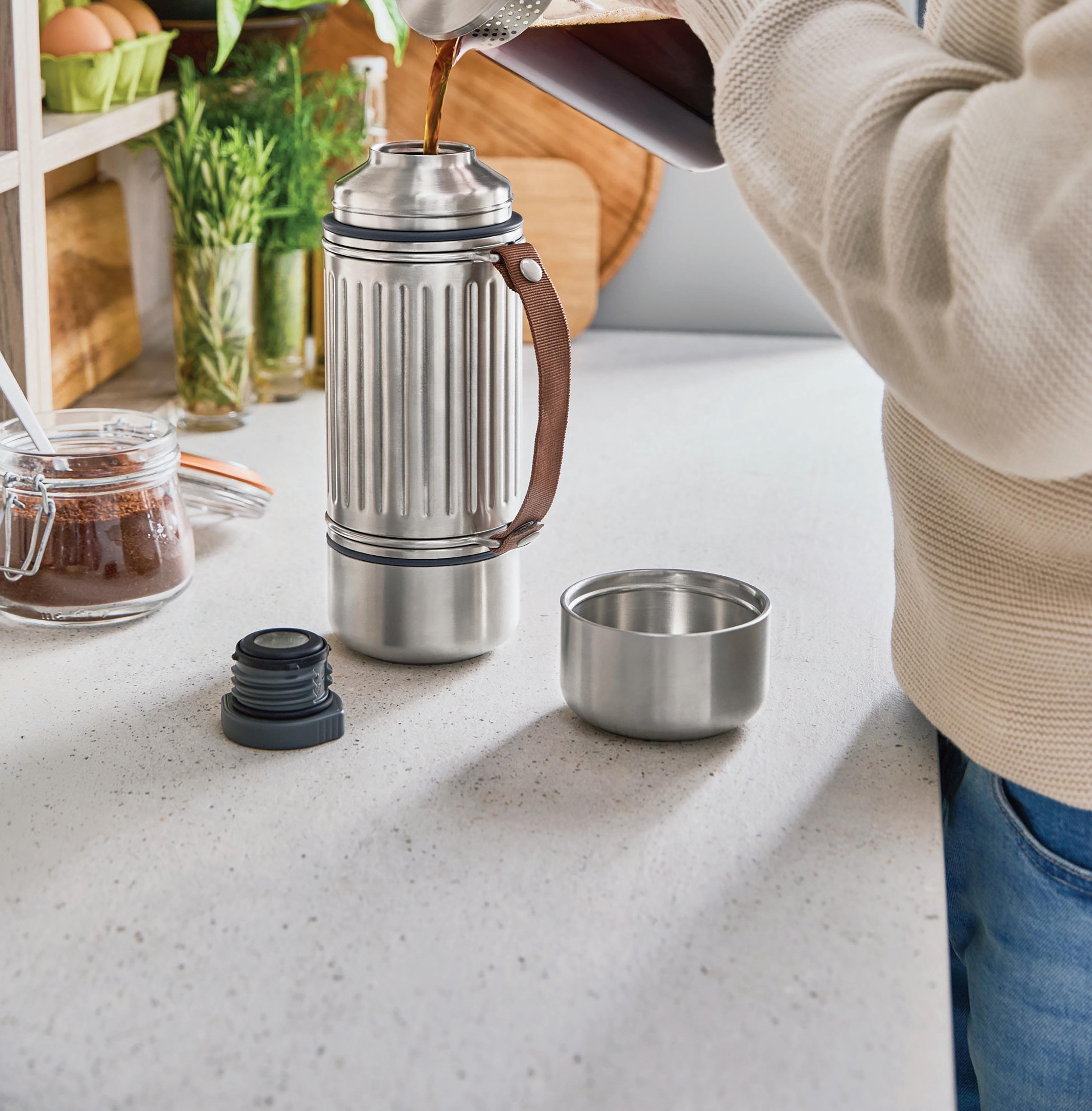 Recycled Stainless steel • Volume 0,6L. • Leak proof • Vacuum insulation • Keeps warm for 5 hours • Keeps cool for 15 hours • Carry This product contains 66% RCS UNION CU1162221