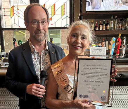 President Les Allt presents TMA Lifetime Achievement Award to Leslie Dawn Knowles