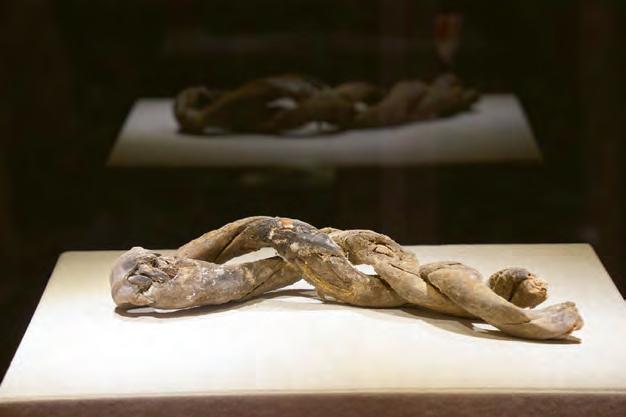 是次發佈會展出了四件古文物,袁文輝表示這些 文物曾深埋於海拔逾4,000米的亞拉臘山上,經過團 隊多年努力不懈的追尋,有收藏家深受感動願意捐贈 相關文物。「將來會有更多相關的文物從民間徵集回 來,我們會結合國際的研究力量,將文物的研究成果 在香港進行發佈,與世界共享,並會將研究完畢的文 物歸還到原本所在的博物館。」
