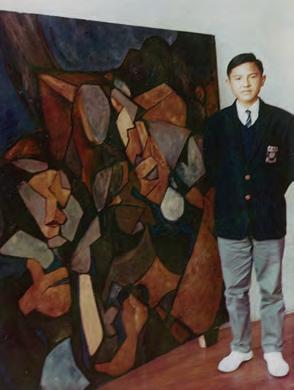 記得這位同學熱愛藝術,寫得一手好毛 筆字,是一位追求西方現代藝術的畫 家,以素描和抽象油畫為主,具有獨特 的風格。我是傳統中國書畫家,因此對 他的藝術思想影響不大。但當時新亞書 院內有一些教授,好像丁衍庸等便與他 有密切的交流。