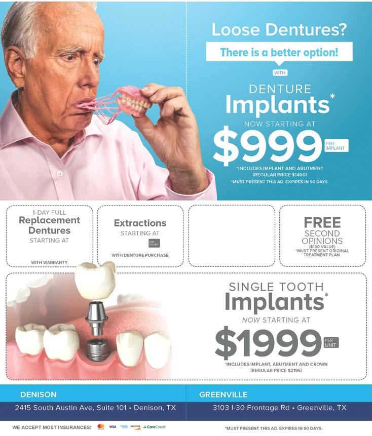 Page 20 • October 11, 2022 • 903-583-3280 4/5/22 - Walk-ins Welcome - Family (Adult & Children) Dentistry - Extraction including Wisdom teeth removal - Implants - Crowns & Bridges - Root Canals including Molar Root Canal - Dentures including immediate dentures, implant support dentures, flexible denture, etc. - Teeth Whitening - Nitrous Oxide sedation, etc. - All Dental Emergency Services 1400 N Center St. Suite 100 Bonham, Texas OFFICE HOURS: 10:00am - 6:00pm (M-F), 9:00am - 2:00pm (Alternate Saturdays) 903-304-5808 www.horatiodental.com greatsmile@horatiodental.com Now Hiring: Spanish Dental Assistant & Front Desk Help needed. DALE R. ROSE Car/Tr uck/Motorcycle Wrecks Premi ses Injur ies E quipment Injur ies Workplace Injur ies Civ il Litigation INJURY LAWYER New Bonham Office: 211 N. Main St. Suite 201 Bonham, TX 75418 Allen Office: 80 E. McDermott Dr. Allen, TX 75002 w www roseknowslaw com dale@roseknowslaw com 972 634 ROSE (7673) We believe that your injuries are serious to you, and we want to help you recover for your damages. Call us. FREE Consultation 10/11/22 We now have fall vegetables, herbs, mums, trees, and bedding plants. Follow us on Facebook: The Flower Pot for new arrivals and specials.