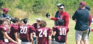 New Savoy head football coach Jacob Guzman (holding hat) speaks to the Cardinals on Aug. 13 during a home scrimmage at Robert F. Hodges Field. Photo by Rich Hilliard