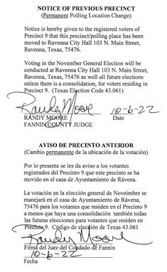 Tuesday, October 4, 2022, Fannin County Judge Randy Moore called to order at 8:50 a.m., a Special