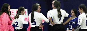 Second-year Dodd City head volleyball coach Lindsay Carter Giles speaks with the Lady Hornets on Oct. 11 during District 19-1A volleyball at Savoy.
