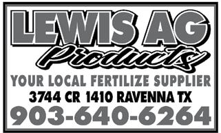5/17/22 Chris Johnson, Broker Dale Horton Jeri Lea Johnson DeAnn Jones Amy Patrick JoKyle Varner REALTY 903-815-1661 903-640-3468 903-449-0624 903-227-7826 903-227-0168 903-517-9303 .COM 5/24/22 Diamond E & S Services Free Estimates • Land Clearing • Land Management • ROW Clearing • Shooting Lanes • Stump Grinding • Driveways Email: diamondesservices@gmail.com Family owned and operated Owner / Operator Zach Elliott 214-726-6244 • Leveling / Grading Post Holes WEEKS FAMILY BEEF Angus Beef Farm Raised - Grain Finished Straight from the farm to your freezer! Whole Beef: $3500 ~350# meat in freezer Half Beef: $1750 ~175# meat in freezer Quarter Beef: $875 ~ 85# meat in freezer Large Box: $100 (3# Roast, 3# Ribs, 2# Kabobs/Stew Meat, 8# Hamburger) Lg Premium: $150 (Large Box + 4 steaks - New York Strip & Sirloin) Small Box: $50 (3# Ribs, 2# Kabobs/Stew Meat, 4# Hamburger) Sm Premium: $75 (Small Box + 2 steaks - New York Strip & Sirloin) Dodd City, Texas | To order: call Andy Weeks at 903-583-0122 or email: andyweeks21@gmail.com Website: weeksfamilybeef.com 9/24/19 -- Hours changed for 02/22/22 edition Fannin Pregnancy Care Center 903-640-8230 www.fanninpregnancy.org HOURS: Tuesday 9 AM - 5 PM Thursday 9 AM - 5 PM Saturday 9 AM - 1 PM FREE Pregnancy Test FREE Sonogram Parenting Classes Prenatal Classes Page 4 • October 25, 2022 • 903-583-3280 Now Open Parts & Service 9/1/20 Bois D’Arc General Store & Grill at Nana’s Place 903-664-4004 4831 E FM 1396 Telephone, TX 75488 Grill Breakfast Lunch Dinner Call in orders welcomed. Kayak Rentals. Homemade Jams & Jelly. New Hours for Hunting Season - Beginning Sept. 1: Mon - Wed: 7:00am - 8:00pm • Thu: Closed Fri: 7:00am - 8:00pm • Sat: 9:00am - 8:00pm Sun: 9:00am - 3:00pm Outdoor seating only. Facebook: Bois D’Arc General Store at Nana’s Place 8/30/22 10/25/22 90th Birthday Party for “Aunt Betty” Johnson November 5th • 3pm - 7pm Hunni Rose Ranch 10525 N State Hwy 78, Ravenna TX 75476 RSVP 903-815-7216