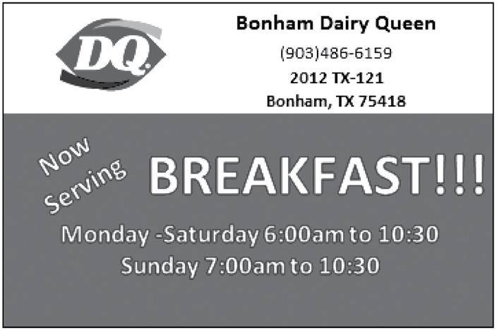 Where: 914 S. 5th St. Bonham (across from Calvary Baptist Church.) For more information: 903-583-3910
