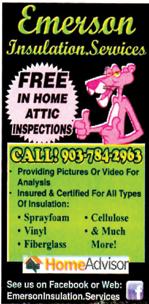 Page 27 • February 21, 2023 • 903-583-3280 3-26-19 JOSE VAZQUEZ Lawn Maintenance, Landscaping, Tree Trimming, Brush Clearing, Fencing, Pipe Fence, Gutters/Drainage, House Painting, Power Washing, Firewood and more! Ph: 903-227-5898 farmandlawn78@gmail.com 8403 N. State Hwy 78 Ravenna, TX 75476 Ph: 903-583-1259 www.guardiangaragedoor.com GUARDIAN GARAGE DOORS Repair • Service • Installation VETERAN OWNED & OPERATED 903.274.2414 9/28/21 Nash Enterprises Joel Nash / Owner New Construction and Remodeling joelnash677@yahoo.com (903)456-3783 PO Box 103 Dodd City, TX 75438 8/3/21 We Do New Construction Residential Plumbing Plumbing Tek M-40891 Kitchen/Lab Faucets, Shower Trims Toilet Change Outs, Tubs, Water Heaters, Tankless Installs, Plumbing Repairs FREE ESTIMATES! 1613 N. Center St. • 903-583-9196 6/15/21 Oil Change • State Inspection • Tire Repair FREE ICE CREAM PARKER CONSTRUCTION Remodeling & Fencing Your Satisfaction Is Our Future Kitchen Remodeling • Bath Remodeling Siding • Windows • Add-Ons • House Leveling Also offering Lawn Care Services Owner: Bill Parker 903-227-9528 4-12-22 1/26/21 Services LLC Property Improvements Johnny Horton • 940-704-7760 LOCALLY VETERAN OWNED U.S. AIR FORCE 21 YEARS Skid Steer Operations Demolition & Site Clean-Up Dumpster Services Auger & Trencher Work Tractor Mowing (Large & Small Acreage) Payment Plan Options J C 5/31/22 Millers Garage 903-486-6223 All makes and models Gas and diesel Mon - Fri: 8am to 5pm 405 Katy Blvd Bonham Texas 75418 Call for appointment Mobile HoMe ServiceS DeckS Skirting FloorS batHS Painting leveling rooFS QualiFieD FHa concrete runner • • • • • • • • 903-640-6999 • texaS one call DoeS it all! electric & Water lineS 407 E. Sam Rayburn Dr. Bonham, TX 75418 903-449-4341 bonhamcustommemorials@gmail.com netxmonuments.com Like Us On Facebook 9/20/22 Residential Commercial Scott Dobbels New Construction / Emergency Repairs Or Anything In Between! License# M-39756 Phone# 903-486-6977 Danny Davidson 903-227-1625 HANDYMAN Anything on your Honey-Do List your Honey won’t do? Call ME!! Bathrooms Flooring Trim Work Remodel Much More... 9/6/22 Justin Miller Office: 903-583-7867 10/4/22 BILL GEORGE CUSTOM METAL BUILDINGS We build: Shops, Barns, Custom Metal Buildings, Pole/Hay Barns, Barndo’s, Metal Houses, Fences, Entry-ways all types of custom metal work. Call us for a free estimate today! Bill George 903-583-0298 9035831137 11/22/22 We love our Veterans and Seniors. Ask about our discount! 40 Years Experience Master Plumber, LLC David Phemister M37363 VETERANS PLUMBING 1/3/23 JOHN KINMAN FENCES 47 Years Still Practicing John Kinman Ph.D. Post Hole Digger 903-965-4251 51 Years Still Practicing CHAIN LINK • WOOD • WROUGHT IRON • PIPE • VINYL • REPAIRS John Kinman Fences (903) 583 - 0418 • 1521 N Hwy 121 Bonham, TX • Authorized Repair Facility 1/24/23 We Service All Equipment! 2/7/23 CA$H FOR JUNK MOWERSTILLERSGO-KARTS CARSCAMPERSCHAINSAWS BICYCLESGOLF CARTS MINI BIKESETC.FREE HAUL-OFF 903-624-3488