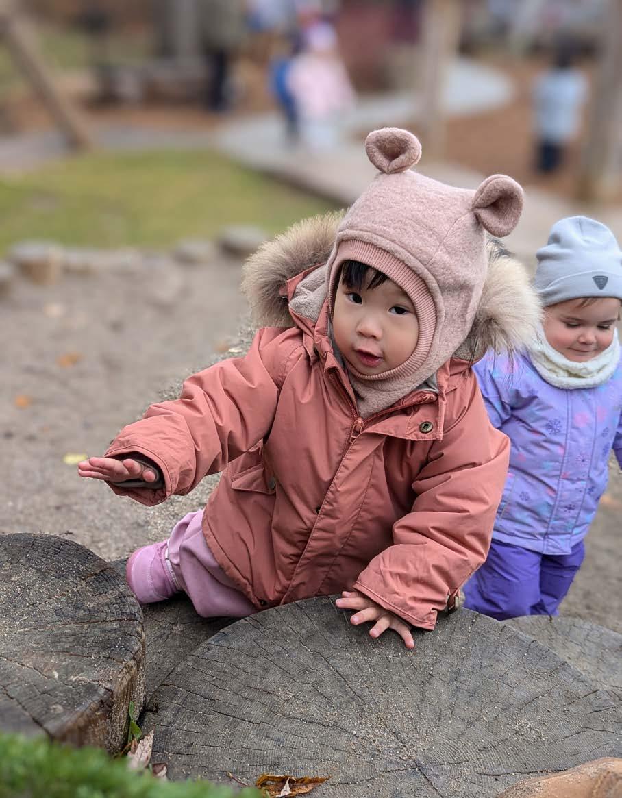 students in our Children’s House enjoy these risks, as they manoeuver around larger playground equipment. This experience allows the child to recognize and evaluate the challenge and decide on a course of action based on personal preference and self-perceived skill.”