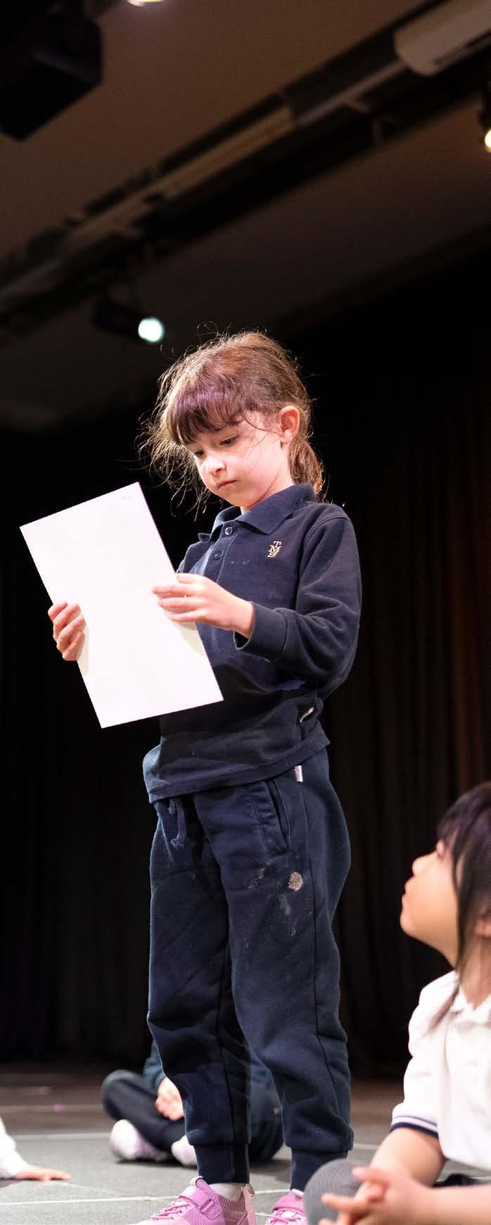 THE NEWLY IMPLEMENTED Drama & Movement program for the Children’s House students offers a creative outlet that not only enriches their educational experience, but also plays a key role in shaping their future-readiness, public speaking abilities and overall well-being. “As we continually strive to enhance our students’ experience, the introduction of new programs designed to foster creativity, confidence and social-emotional development is becoming increasingly vital,” says Toddler and Children’s House teacher Alana Colombo.