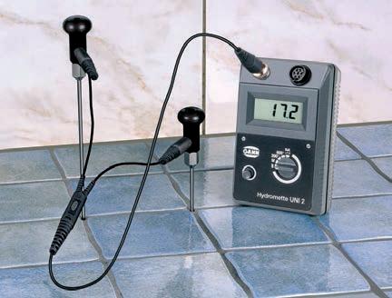 The unit has a flexible sensor pipe ( gooseneck ) and is therefore particularly suited for humidity analyses, e.g. for damage survey or while the building is drying. Additional applications include checking whether flooring or wall covering may be laid.