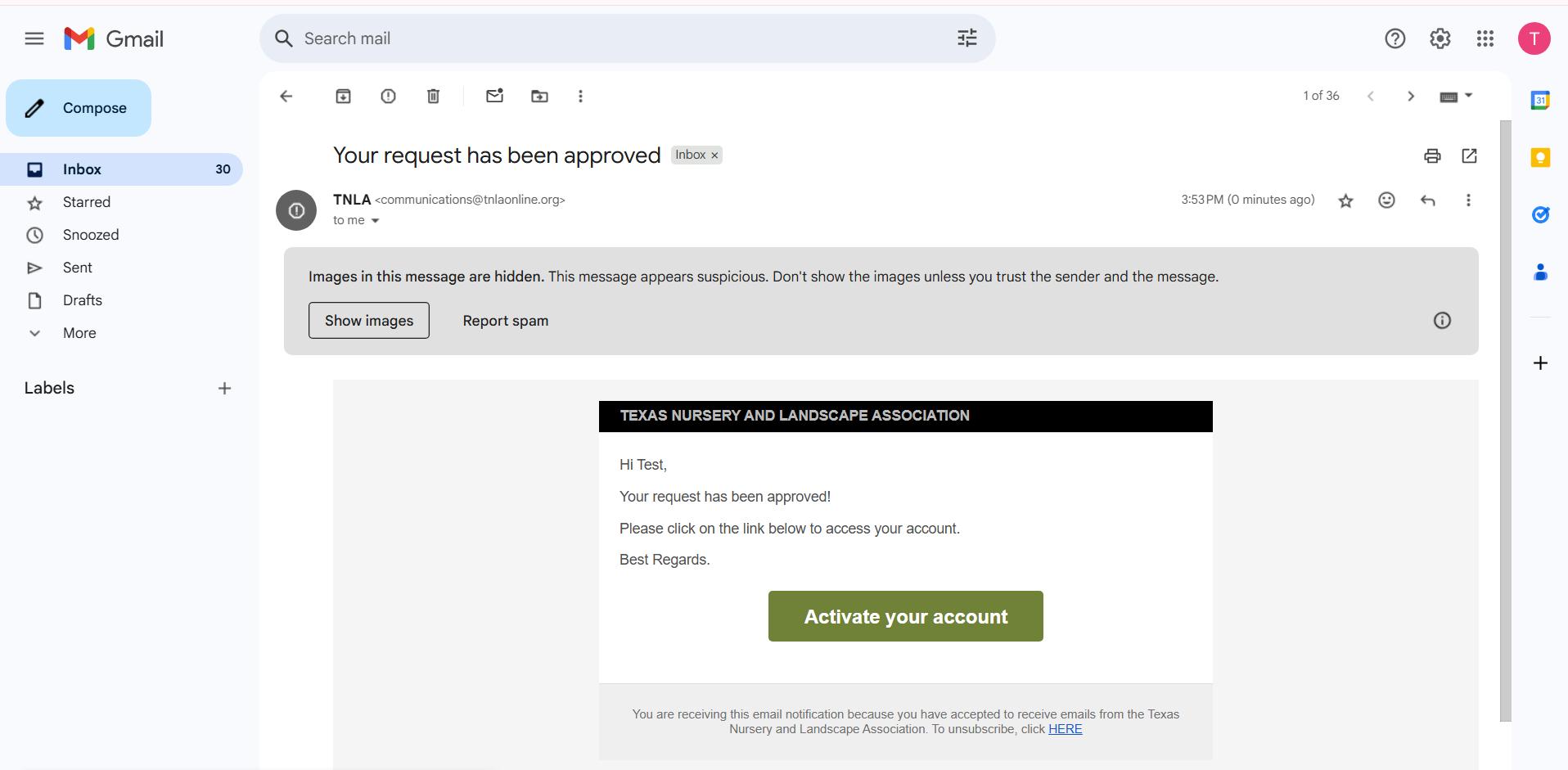 After your invitation is approved, you’ll receive an activation email. Click Activate your account to begin.